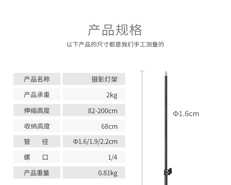 摄影灯架,影棚附件铝合金,高2米,折合67cm,重0.8kg轻便,满足更多拍摄需求,性价比高,美观时尚,轻便携带,坚固耐用。【赠运费险】