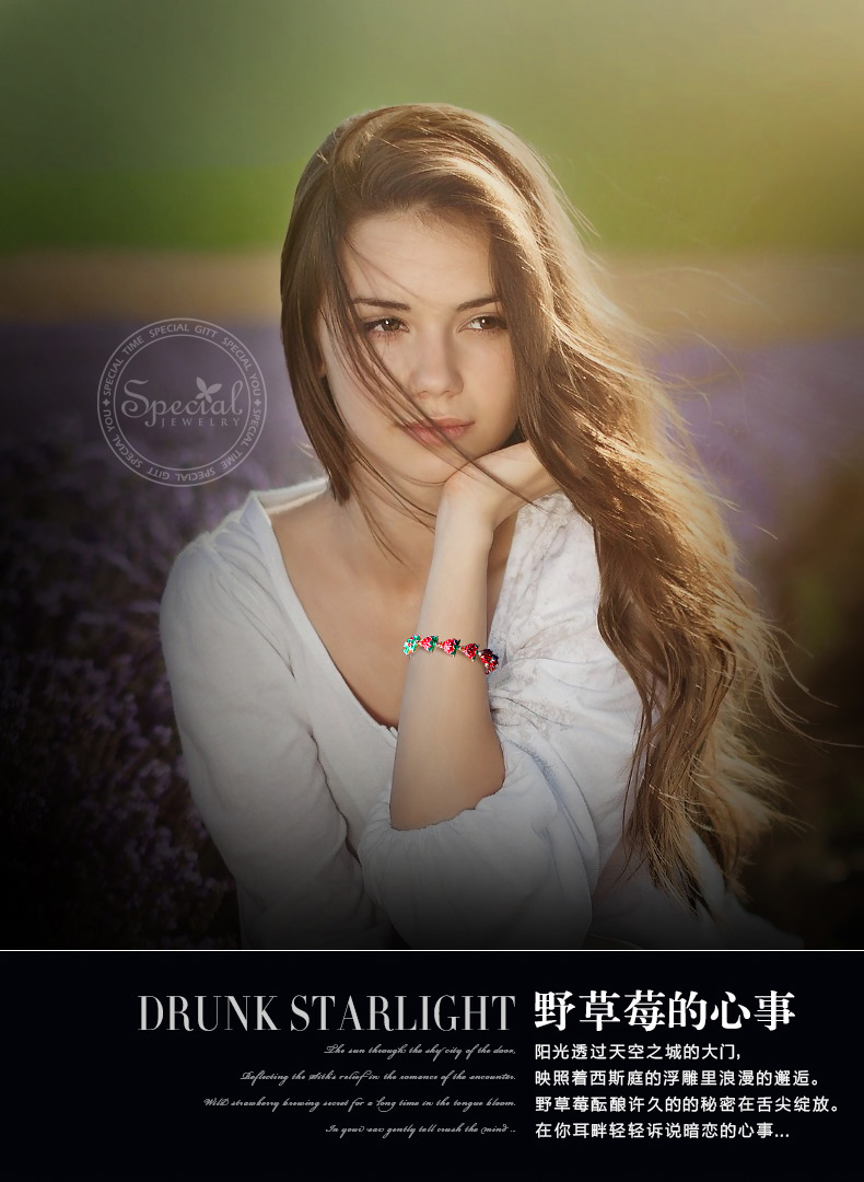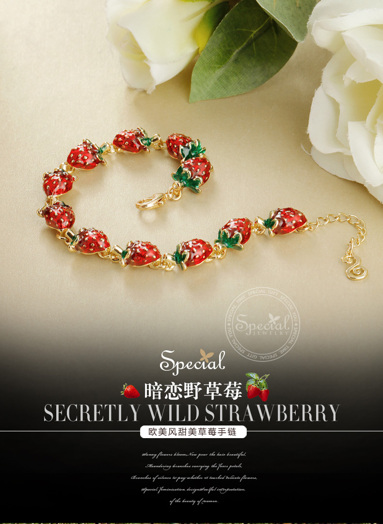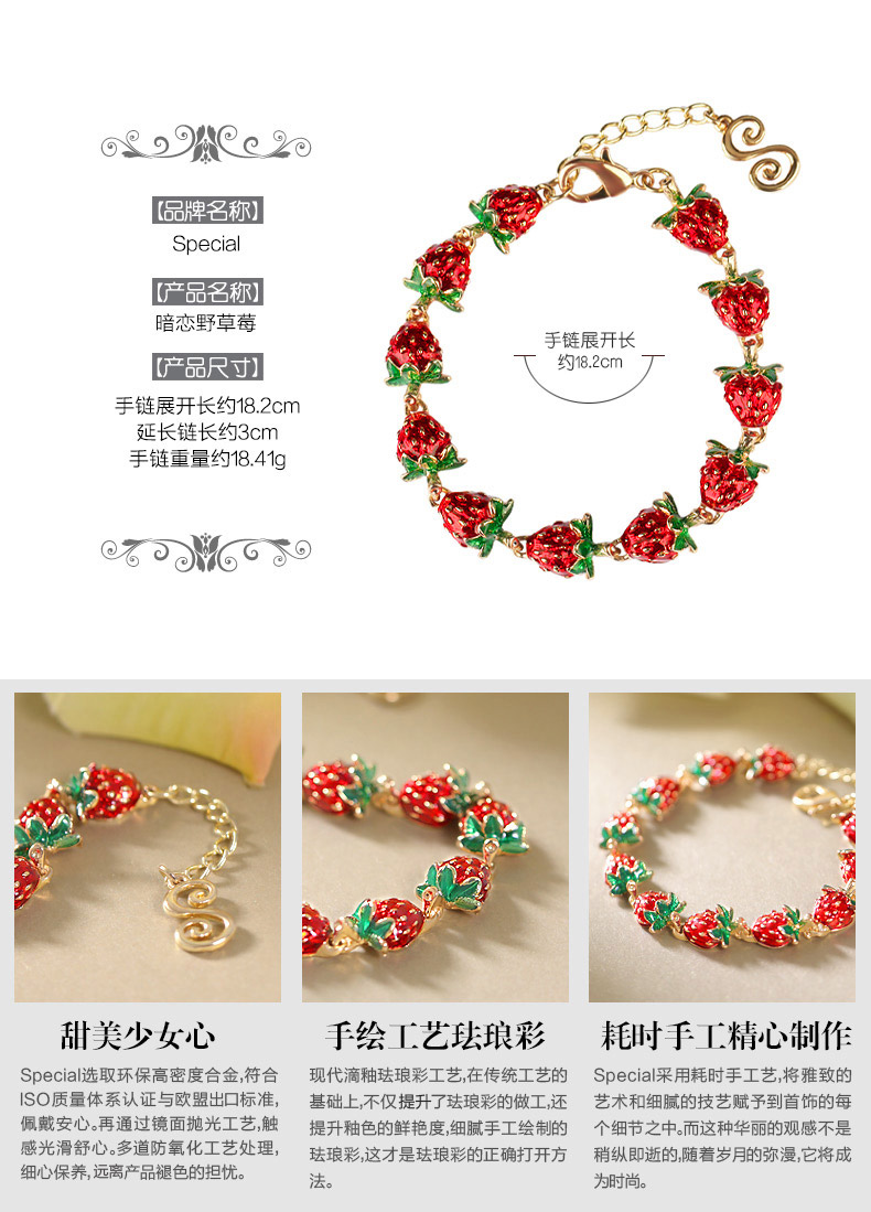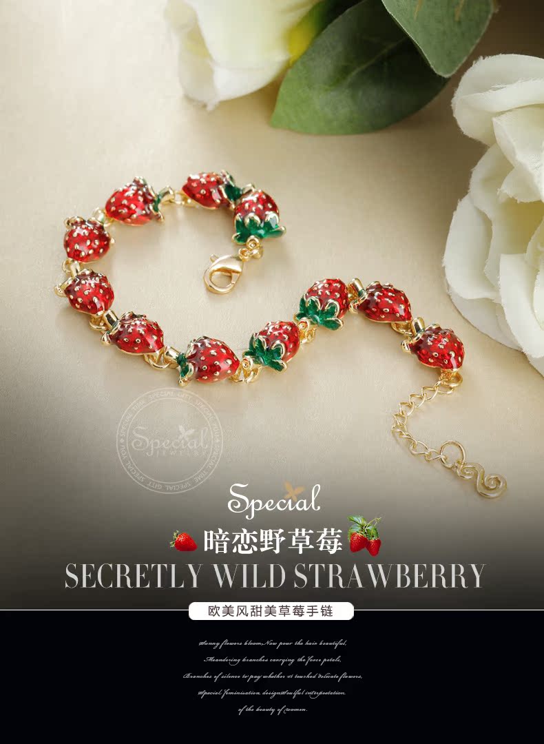 Special欧美甜美可调节手链清新手饰手镯,暗恋野草莓,新风尚,童话草莓设计,俏皮少女感,套装更优惠