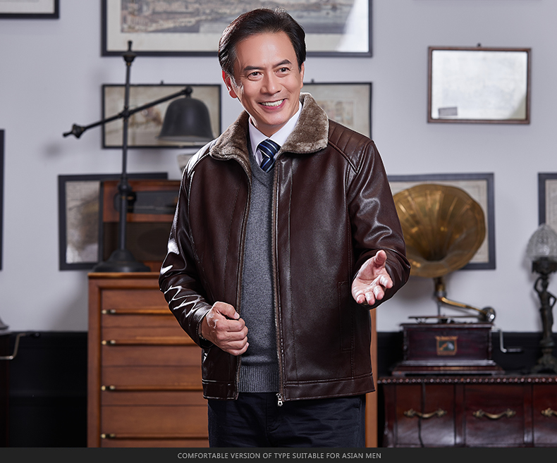 优选PU皮材质,靓丽纹理,亲肤舒适柔软,保暖呵护,专为爸爸量身定做,高密舒适内里,防风保暖,挺括有型,耐磨耐穿,打造温暖绅士