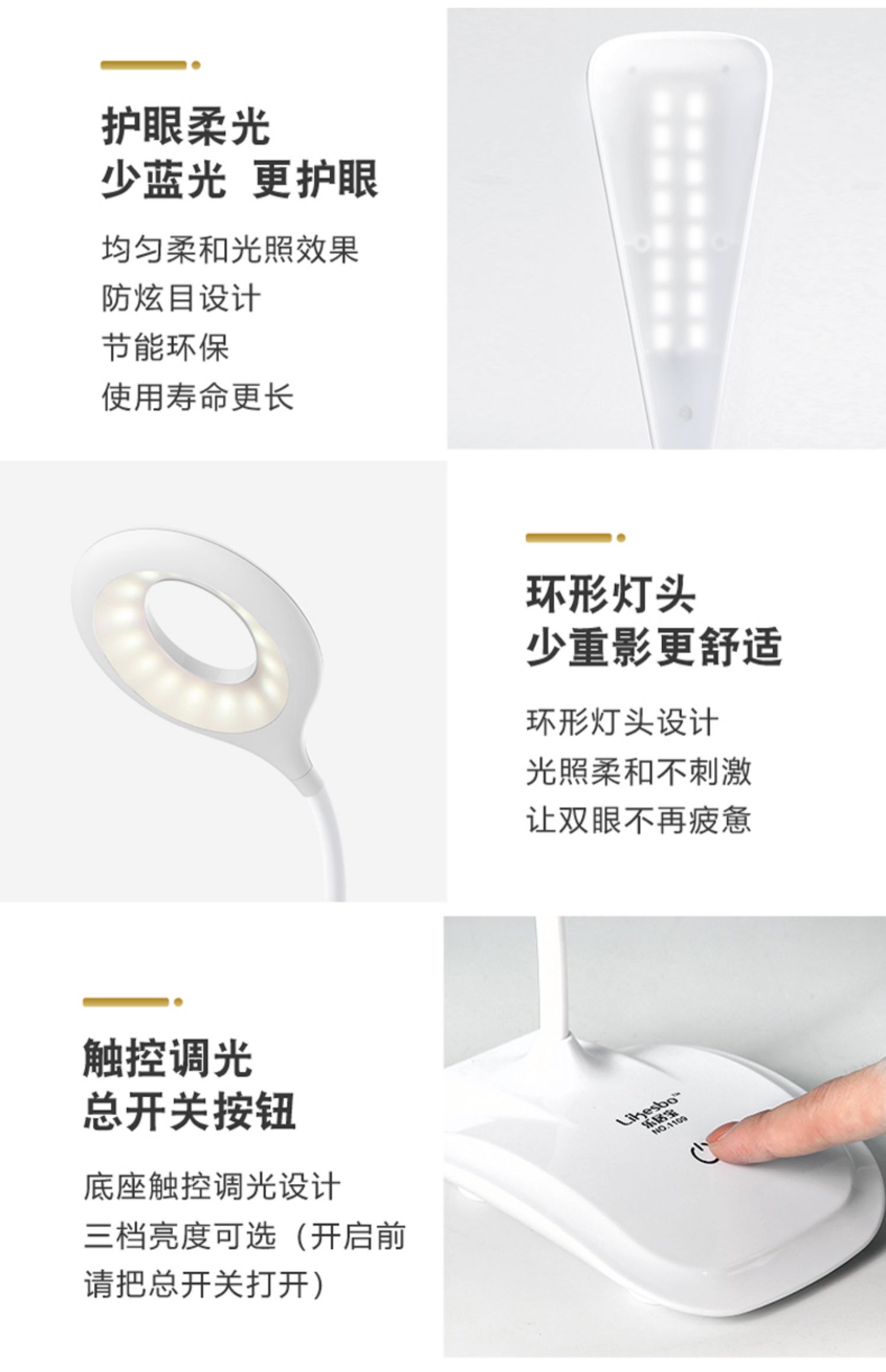 【多款可选】简约性冷淡风格台灯,学习工作必备好物!三档调光,专为读写设计,充电保护,护眼无频闪,呵护每双认真的眼睛!无声触控安静开启!