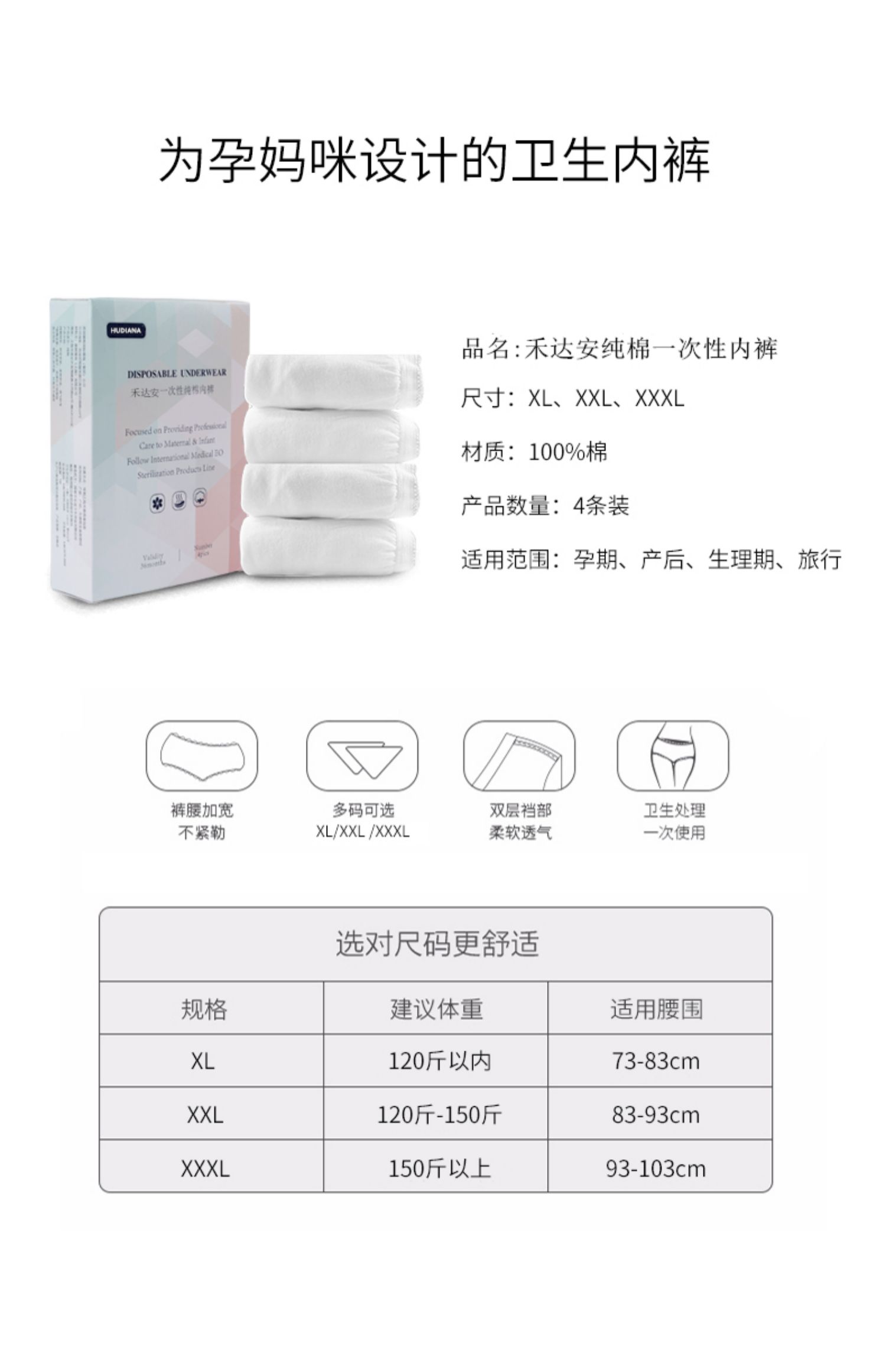 100纯棉,透气干爽,女生每个月的那几天不能碰凉水,穿一次性内裤最合适不过了~