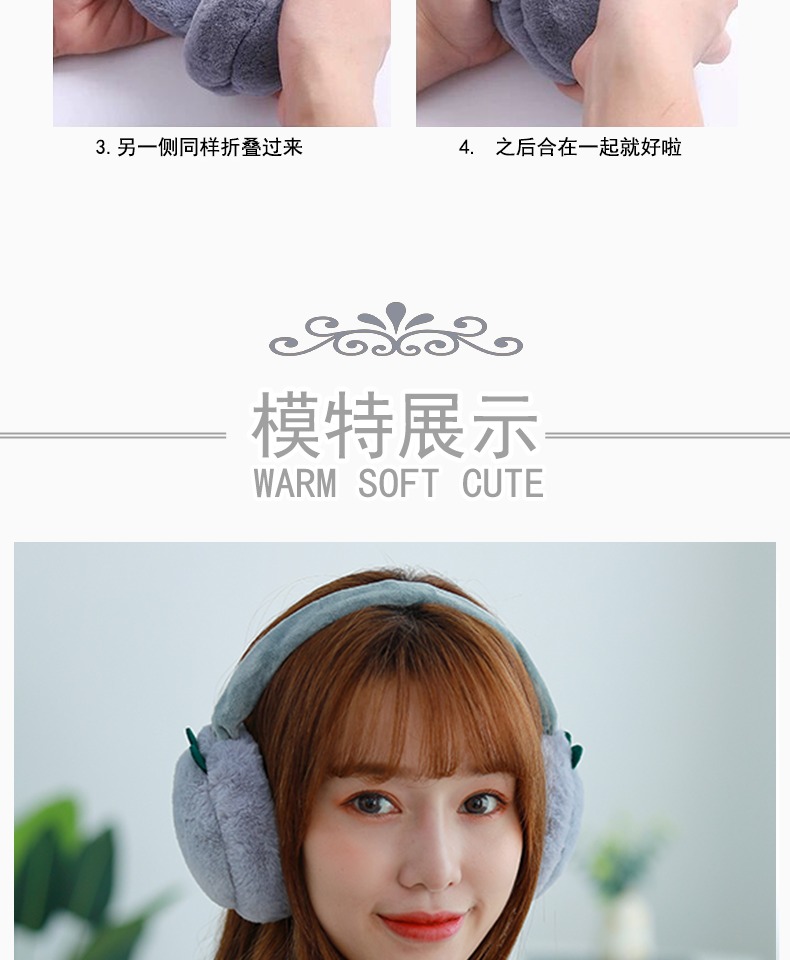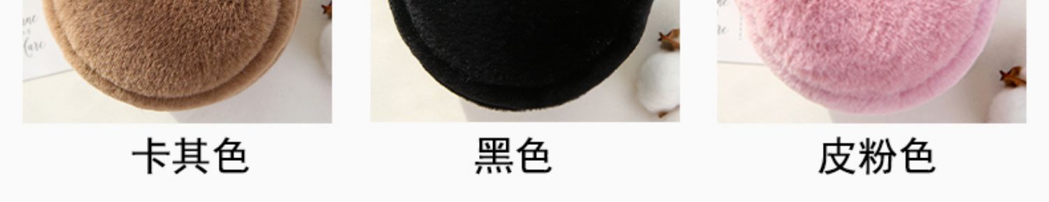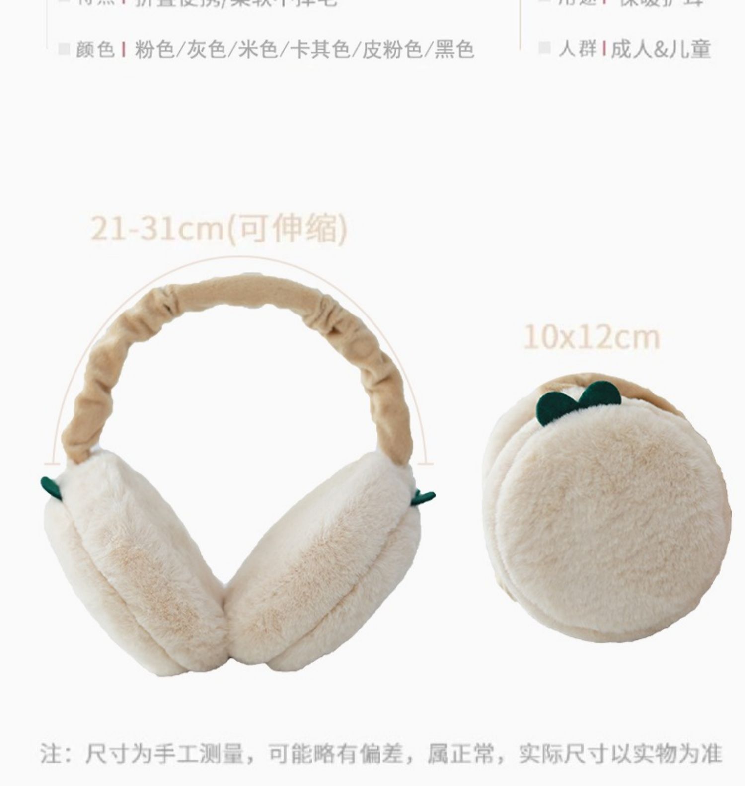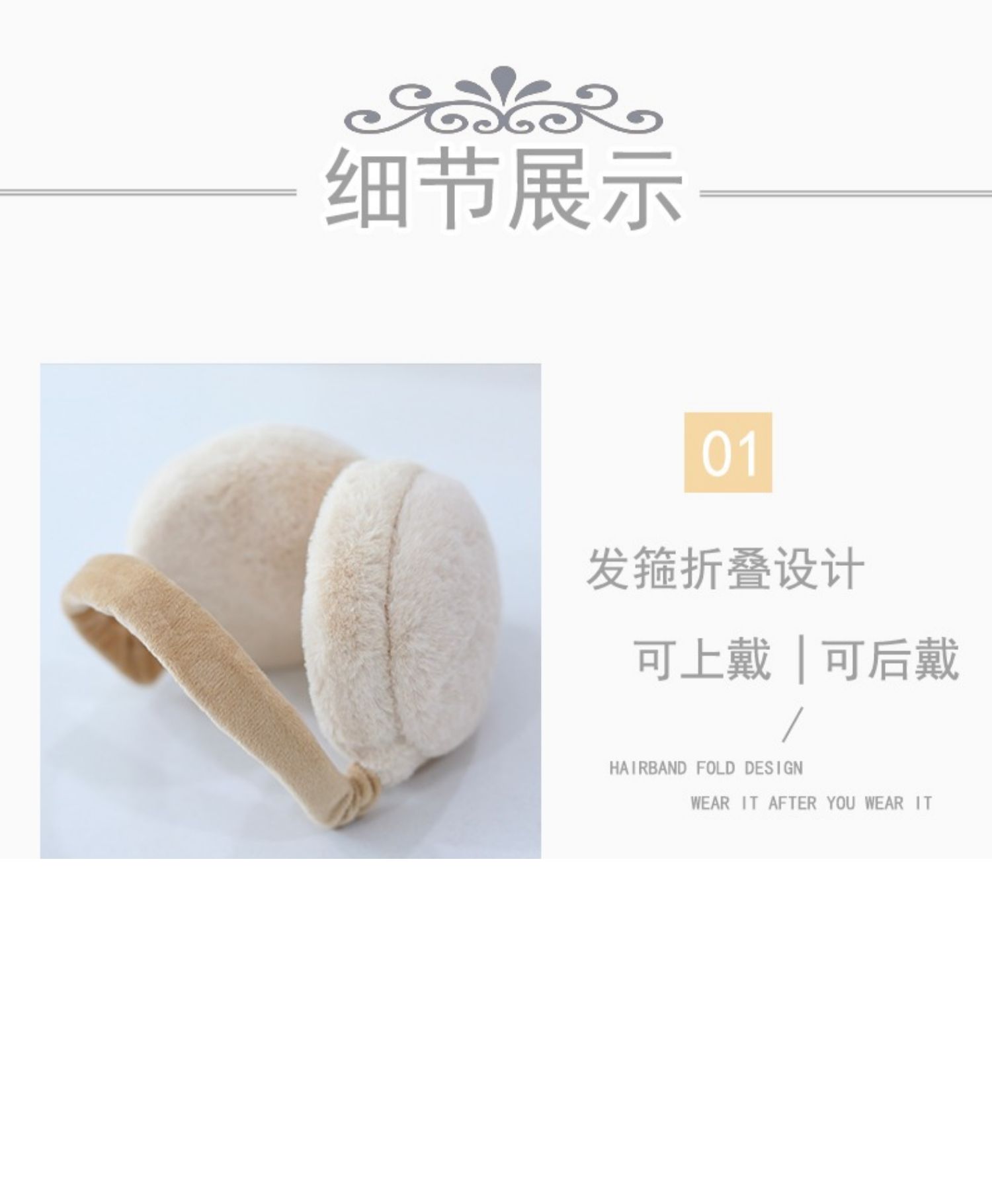 网红款出行必备神器,可折叠汉堡设计,一手可握,收纳方便,可上戴和后戴,选用上等贵妃绒毛料,亲肤又舒适,甜美可爱又护耳,记性回弹,不变形。