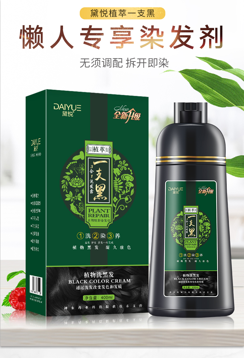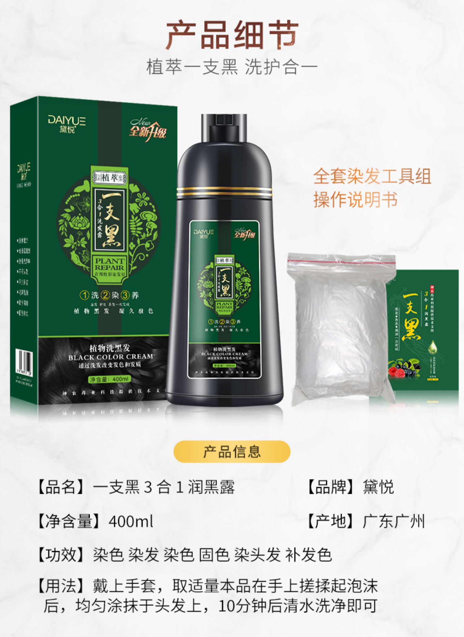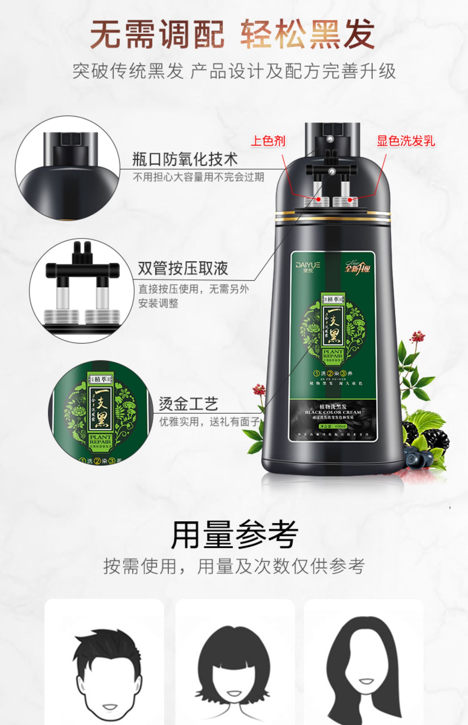 黛悦旗舰店一支黑,专门做高端染发剂,洗发=染发,无需调配,操作方便,只黑头发不黑头皮,温和不刺激,健康安全,轻松搞定染发,15钟快速上色,送全套染发工具~【赠运费险】