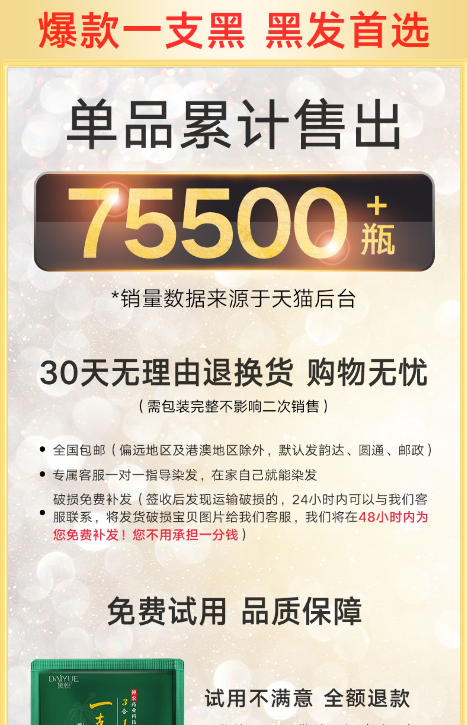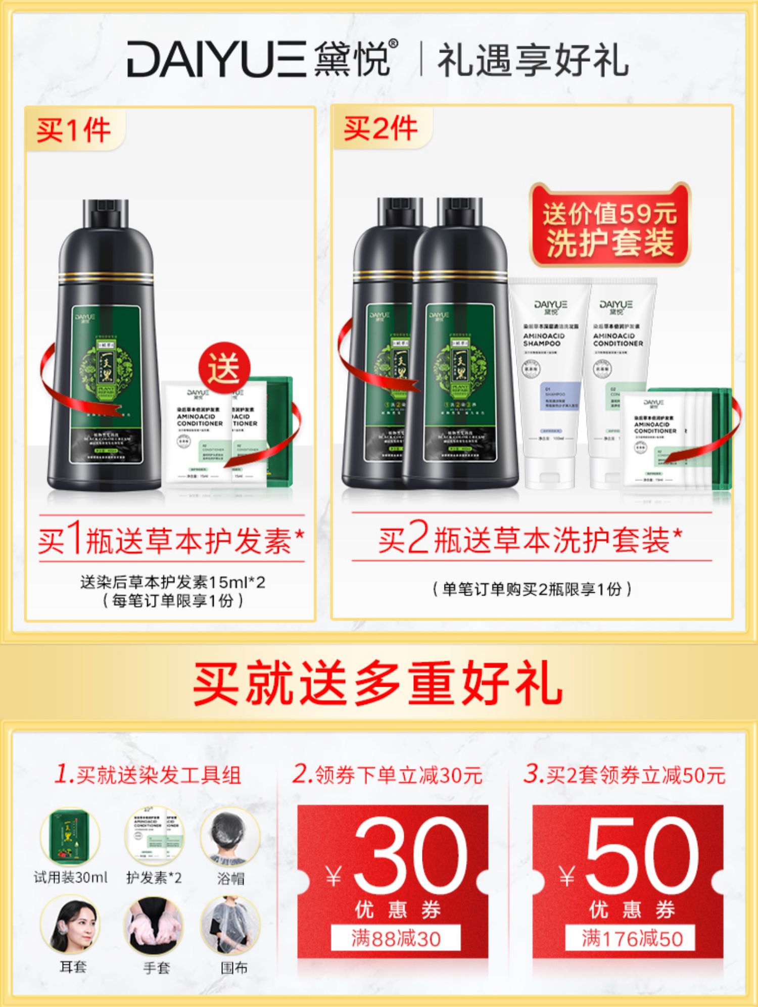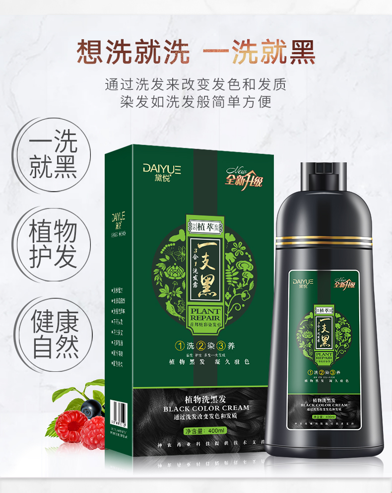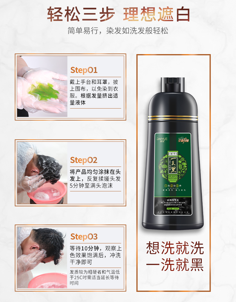 黛悦旗舰店一支黑,专门做高端染发剂,洗发=染发,无需调配,操作方便,只黑头发不黑头皮,温和不刺激,健康安全,轻松搞定染发,15钟快速上色,送全套染发工具~【赠运费险】