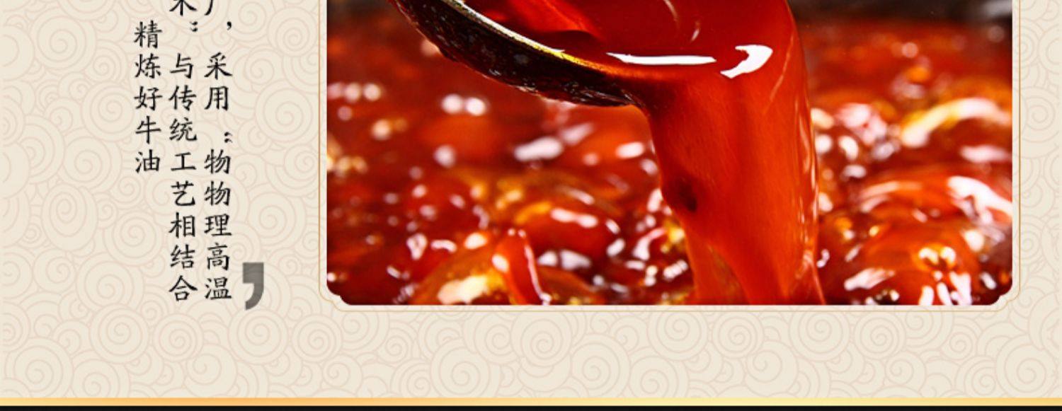 【一定要拍2件,到手800g仅19.8元】出口级品质,精选优良牛油原料,手工熬制炒料,麻辣醇香好口感,色香味正,好吃不上火!过年了家中煮火锅做菜都用得上!正宗火锅店的味道【赠运费险】
