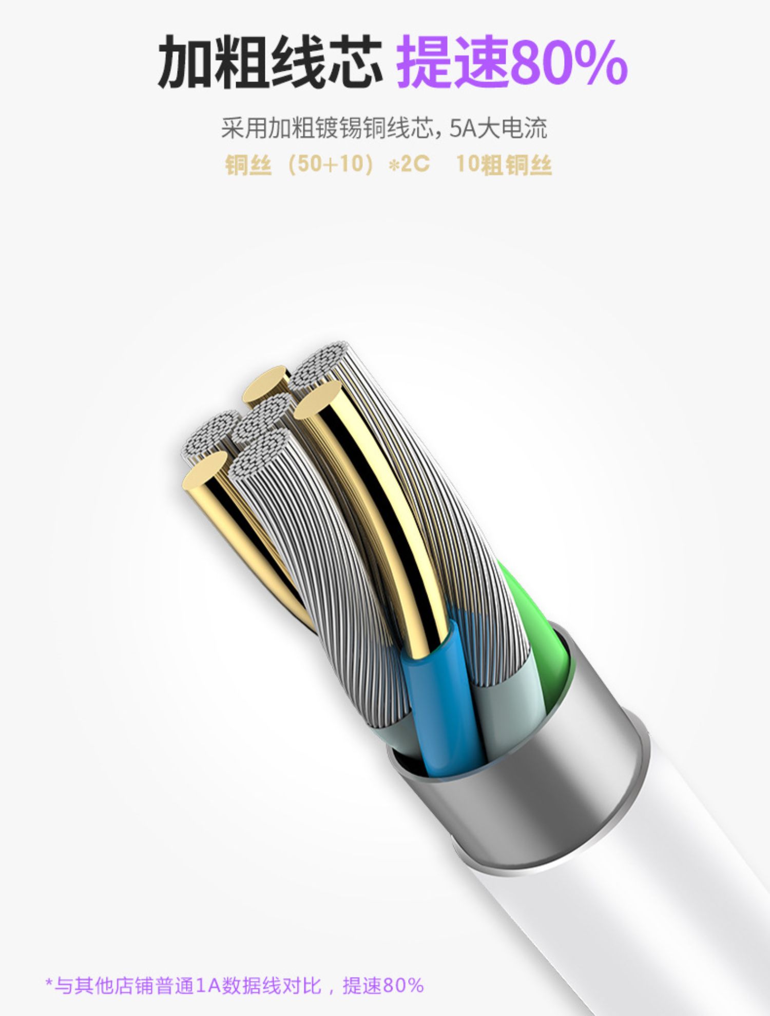 双引擎极速闪充,安卓专用闪充数据线,全面兼容,安全快充,安全保护,60分钟充满手机,升级铝合金接头,线身抗拉扯更耐用,稳定传输,边充边玩不发烫。
