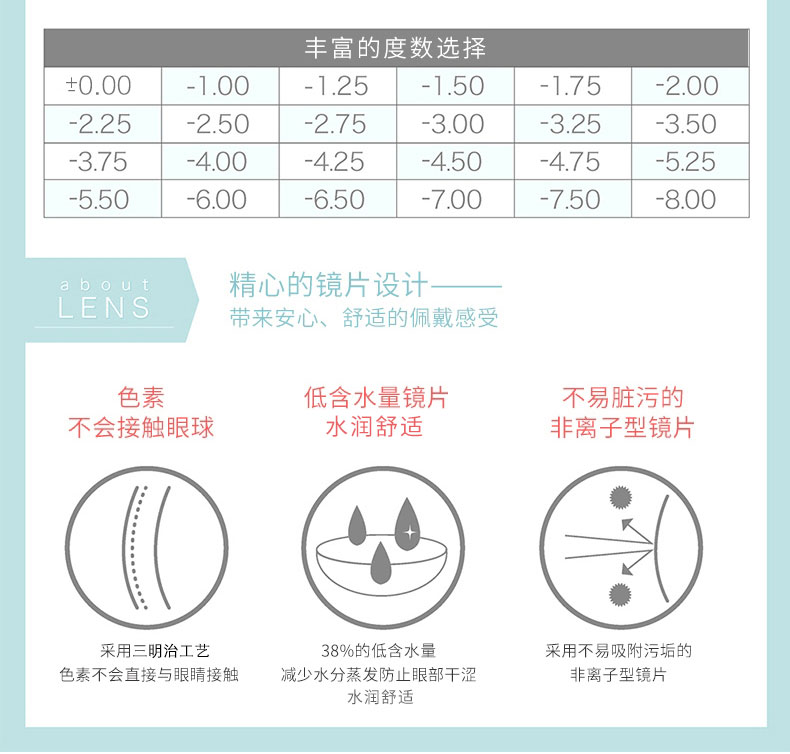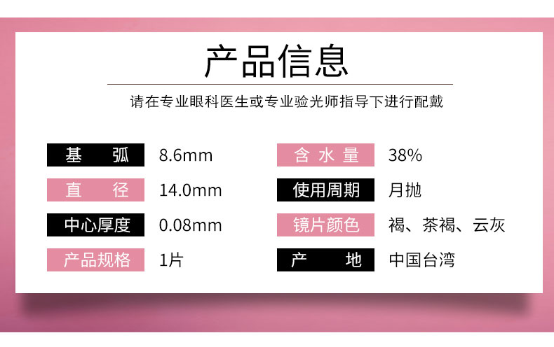 拍2件,采用先进三明治工艺,打造安全舒适的月抛美瞳,直径14.00mm,38%的含水量,防止眼部干涩,水润舒适,让你的大美目bulingbuling闪耀绽放~