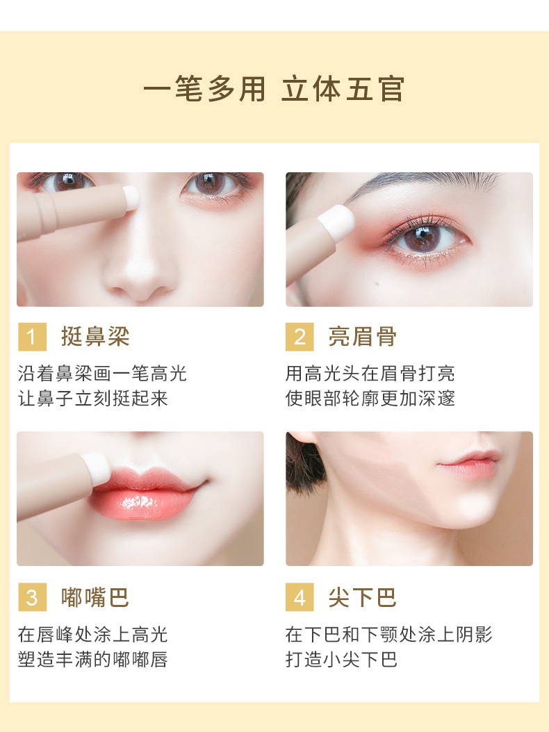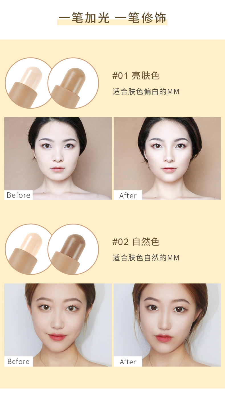 【稚优泉】立体双头高光修容笔,双头双效,立体修容,细腻柔滑,T+V两步,轻松小脸!一笔加光,一笔修饰!防水防汗,不易晕妆脱妆!小V脸,轻松打造!!【30天无理由退换货】