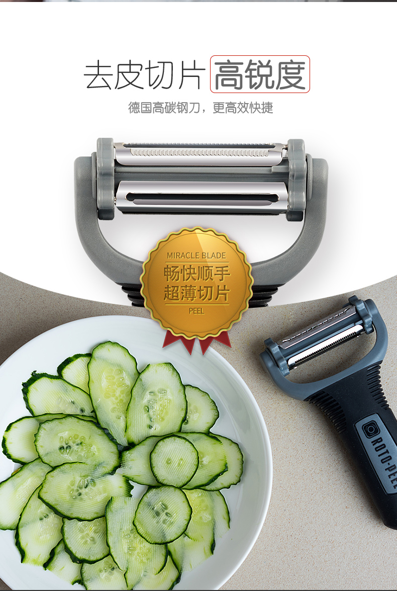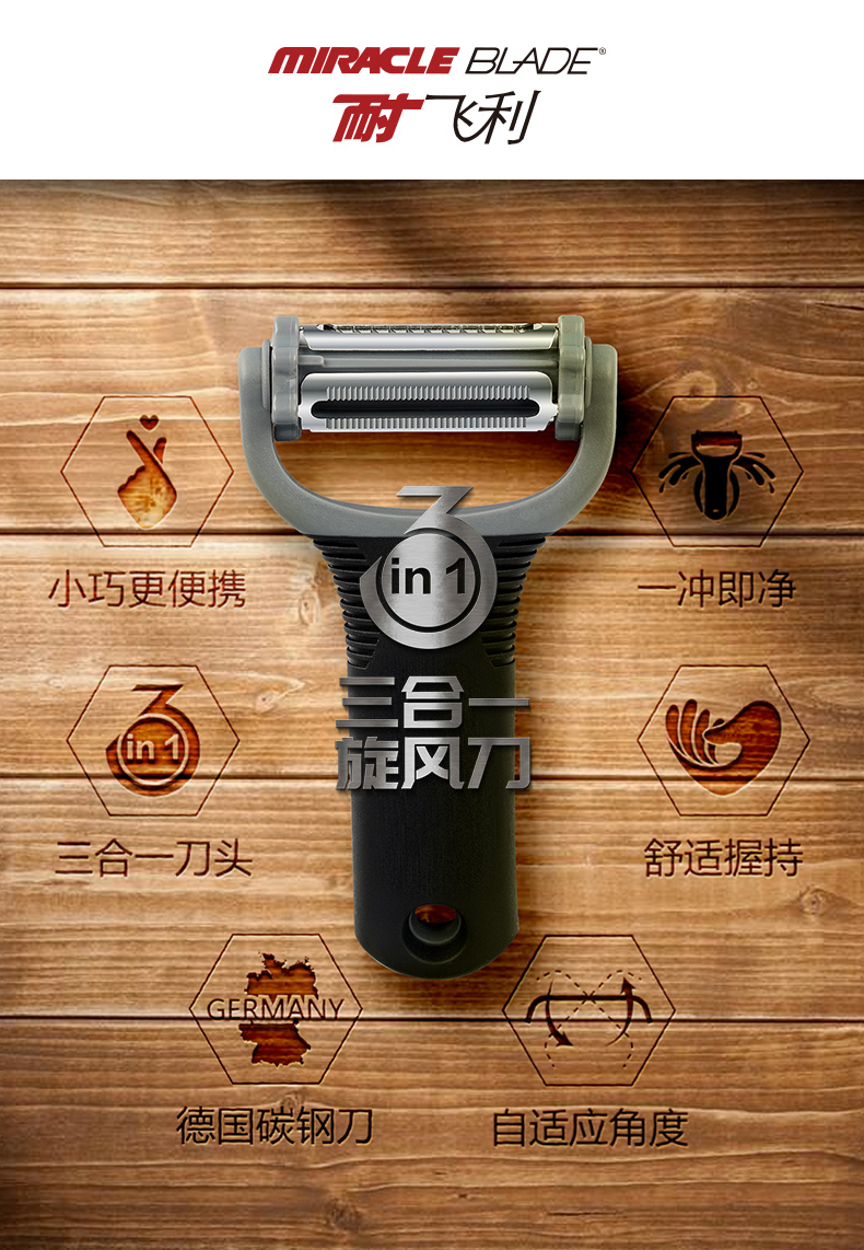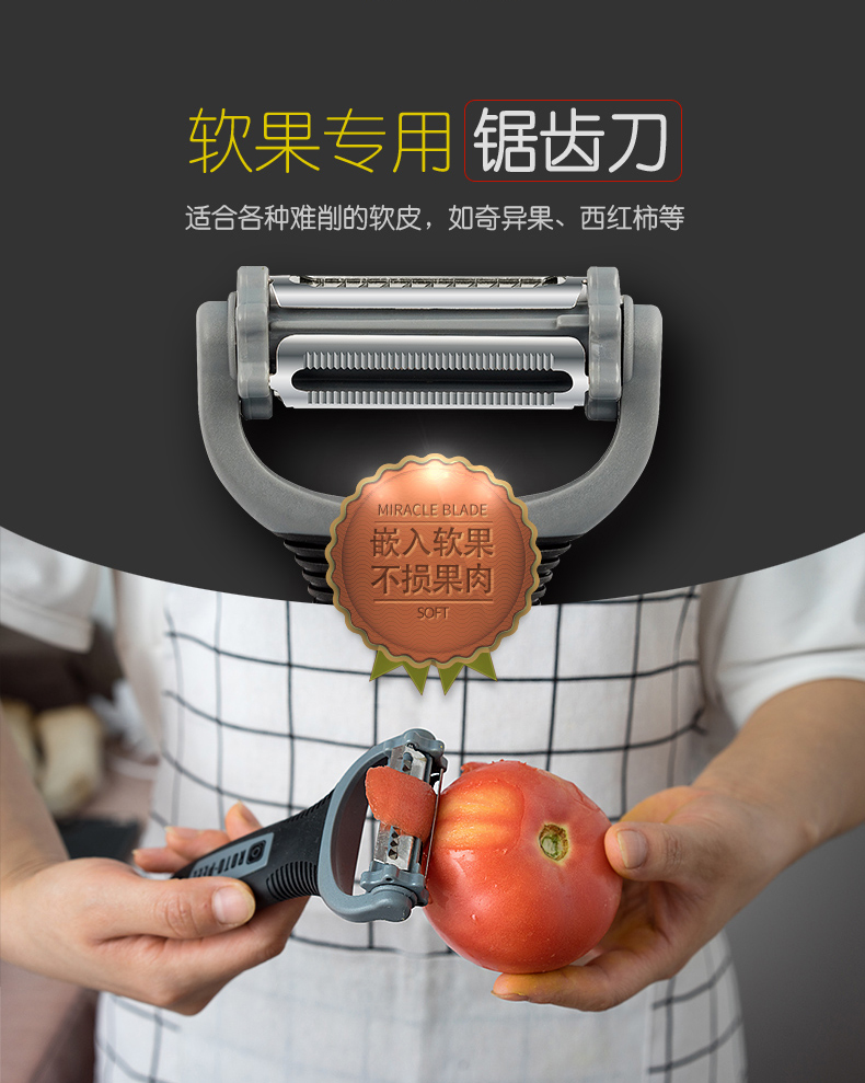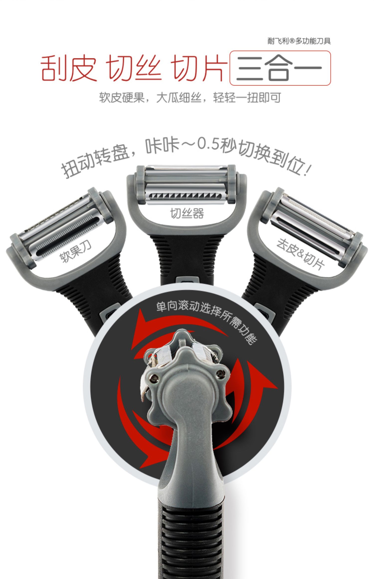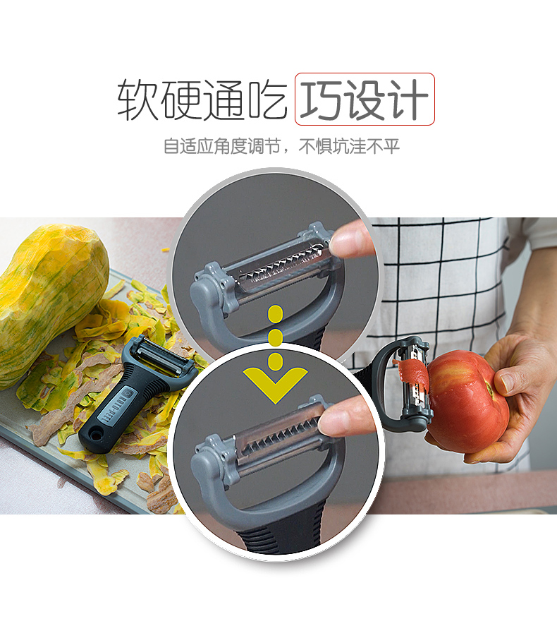 【加送运费险】耐飞利多功能不锈钢削皮刀,三合一刀头,小巧便携。德国碳钢刀,高锐度去皮切片。软硬通吃巧设计,自适应角度调节,不惧坑洼不平。一冲既净,附送刀锋保护套,好清洗易收纳。拍下立减10元。