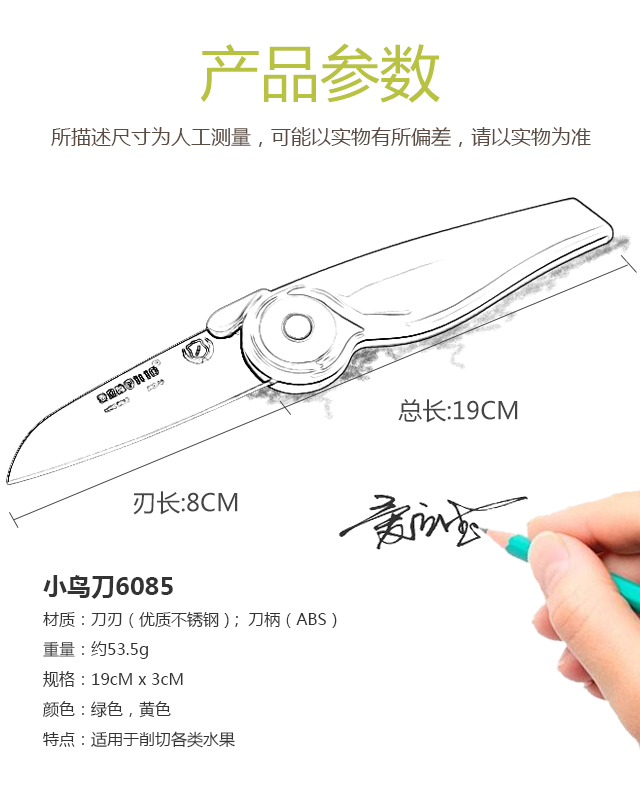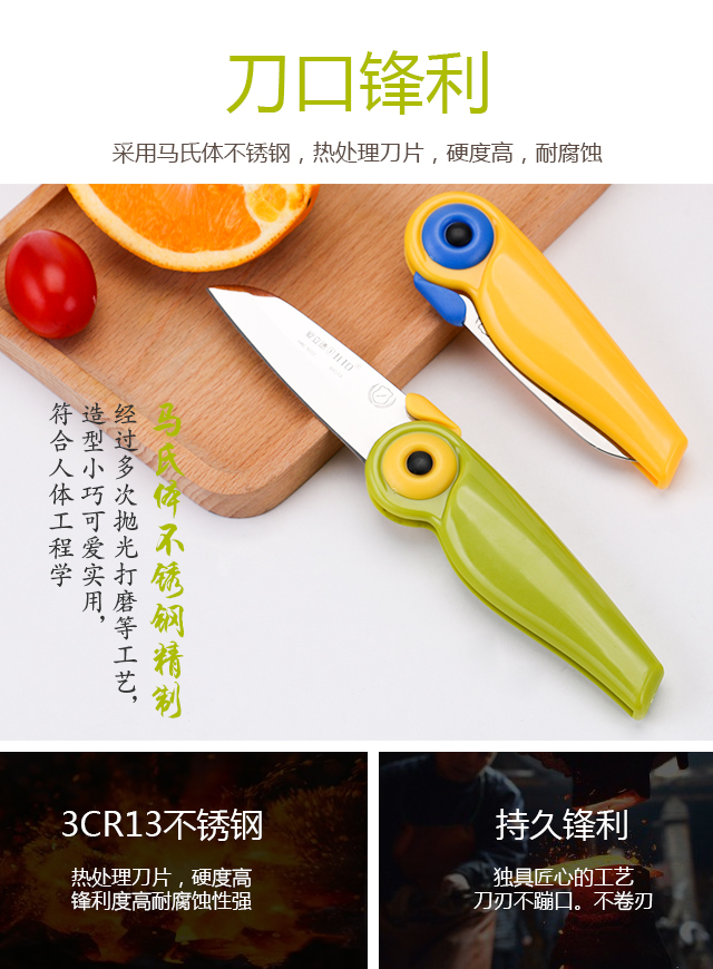 【旗舰店!15天无理由退换货】时尚小鸟设计水果刀,外观精致简洁,使用得心应手,采用马氏体不锈钢,热处理刀片,硬度高,耐腐蚀,持久锋利,削切水果,轻松自如!【赠运费险】
