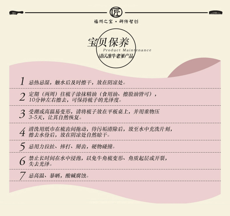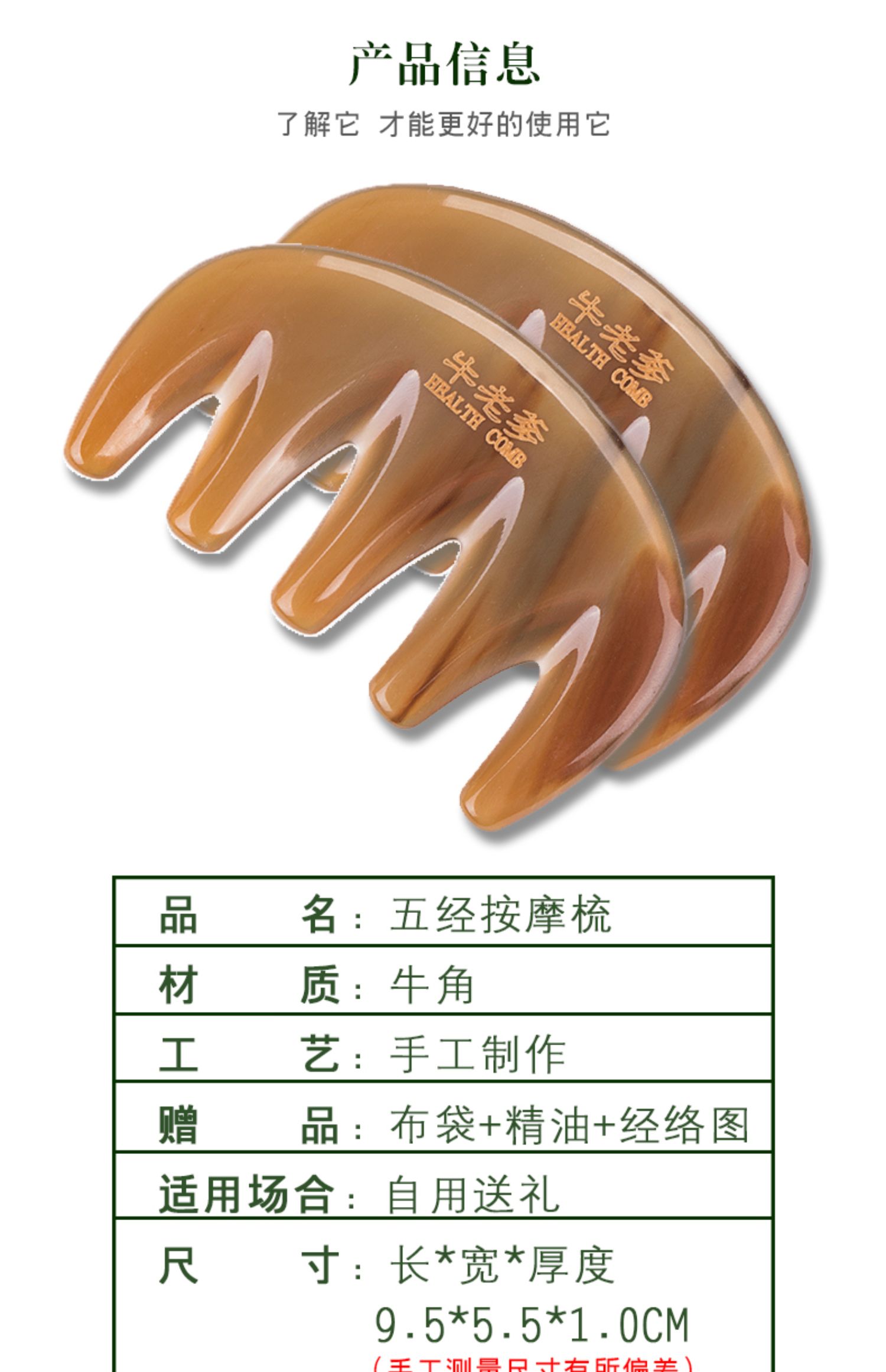 牦牛角梳木梳子经络按摩梳檀木头疗