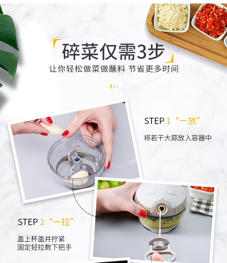 迷你拉蒜神器捣蒜器手动蒜蓉超小型,打切压蒜器家用手拉蒜泥搅碎机