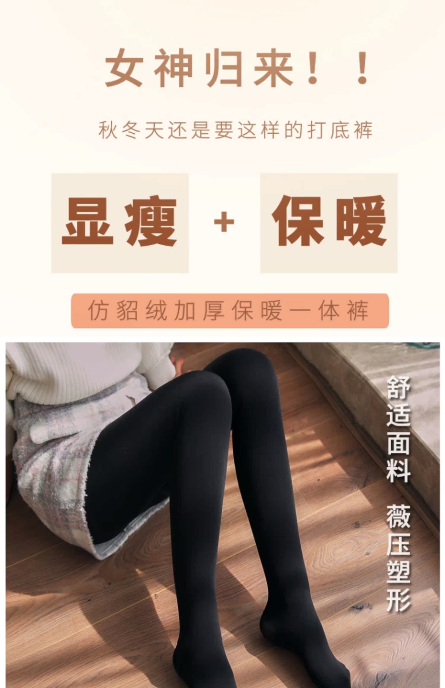 加绒打底裤,显瘦又好看。不易起球,不易抽丝,超柔绒,御寒保暖,美腿美肌,妹子zui爱的光腿神器,穿起来与肌肤融为一体,颜色自然,女神必备光腿神器