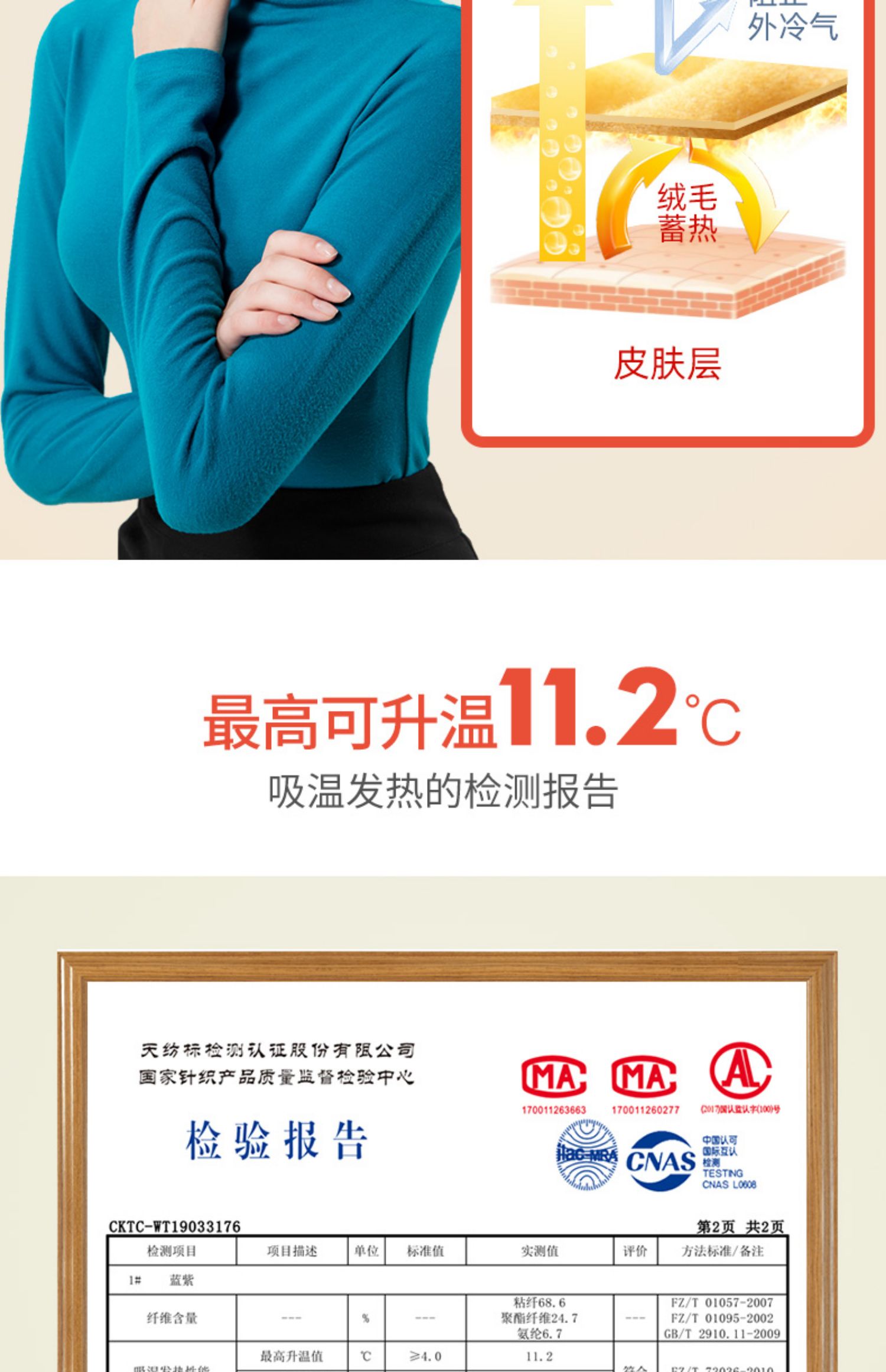 冬天怕冷?采用超细磨毛的面料,更亲肤~还会发热,发热黑科技,可升温11.2°C呢!亲肤无痕,身材毫不臃肿显胖,秋冬有它就够啦!【赠运费险】