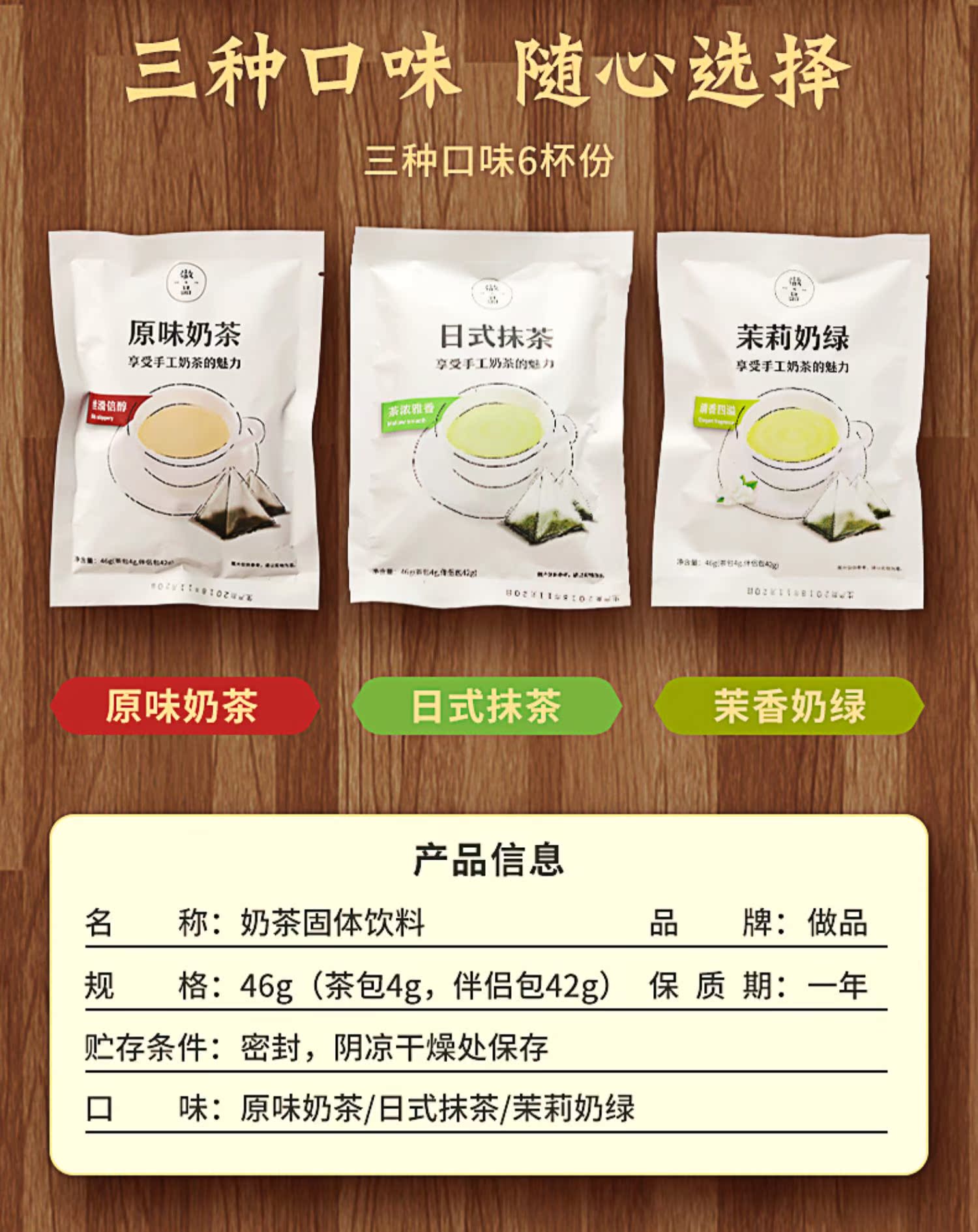 【第二件9.9元】原味*2+日式抹茶*2+茉莉奶绿*2!网红薇娅力荐,0式反脂肪,低糖甜度低,三种风味,百喝不厌,茶叶奶粉独立分包,DIY你的专属奶茶~