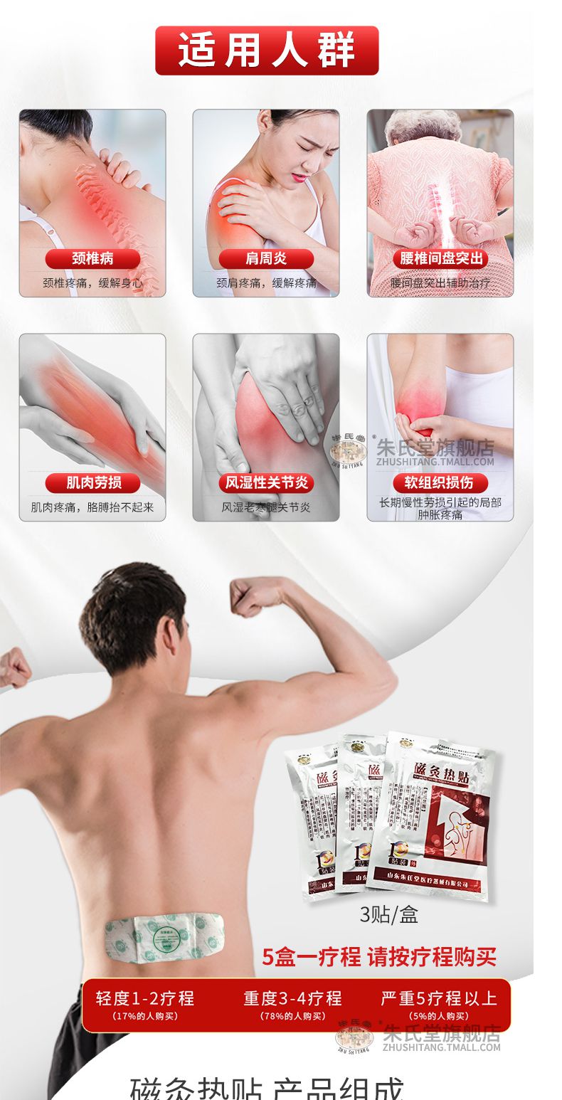 朱氏堂磁灸热贴膏,横扫湿气,寒,痛。养护膝盖保护关节,骨质增生,风湿性炎关节,肩颈椎热敷风湿关节痛。祛风膏药除湿理疗贴,均衡保温久,电脑上班族、中老年都适合,1贴轻松~