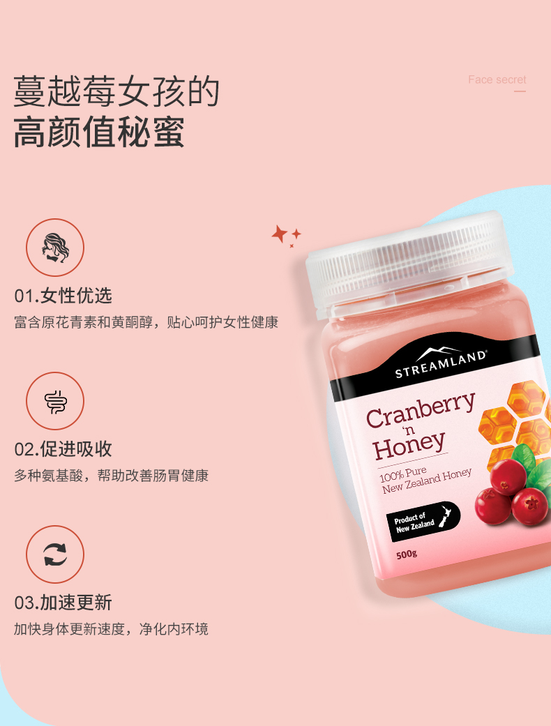 蔓越莓蜂蜜浓厚,仙女们都爱的高颜值秘密!富含氨基酸、花青素和黄酮醇,呵护女生健康,促进吸收,排出身体毒素!【赠运费险】