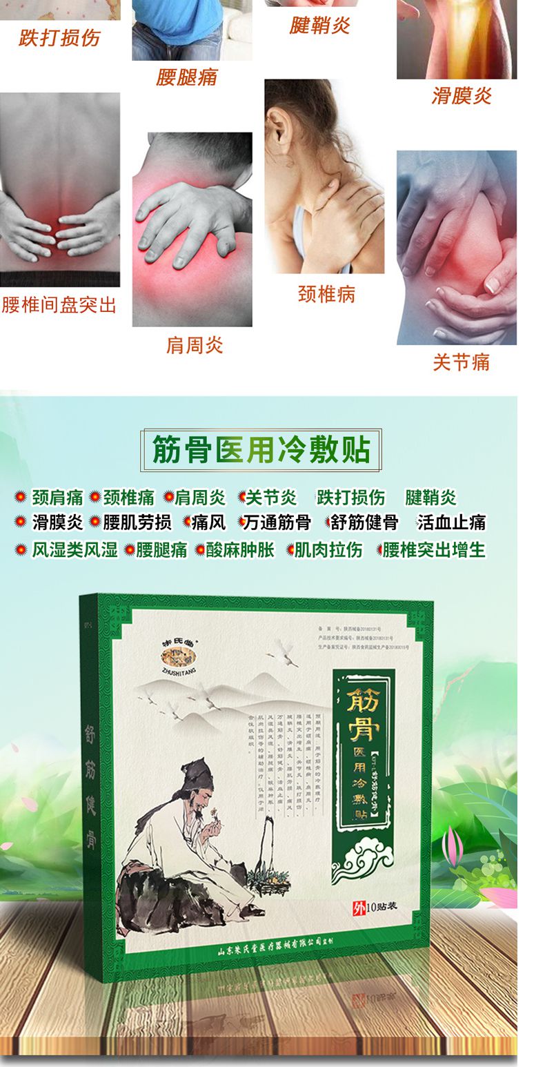 颈椎病、肩周炎、骨刺骨质增生、腰间盘突出贴膏,腰肌劳损腱鞘关节炎膏药贴,运动创伤都可用!认准!1盒共10贴~
