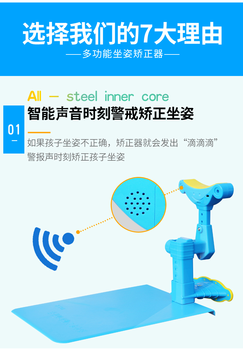 为孩子的视力保驾护航!小雨星防近视坐姿矫正器,升级版,TPR软胶材质+ABS塑料+钢板,高度随意调节,适应不同年龄段的孩子,智能报警语音,纠正错误坐姿,防止孩子驼背、近视,健康护眼,从坐姿开始~