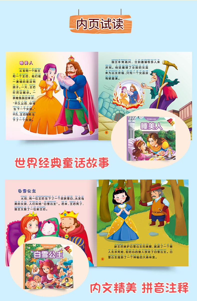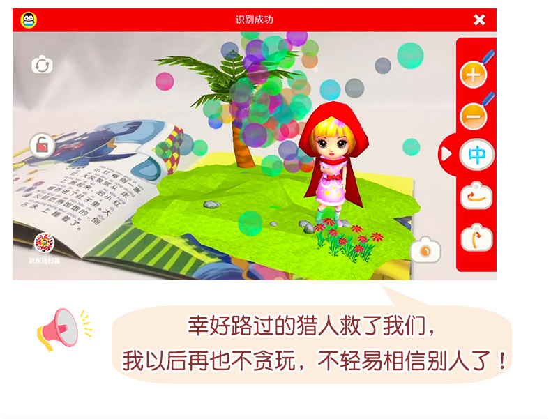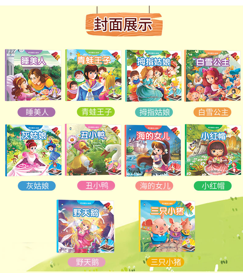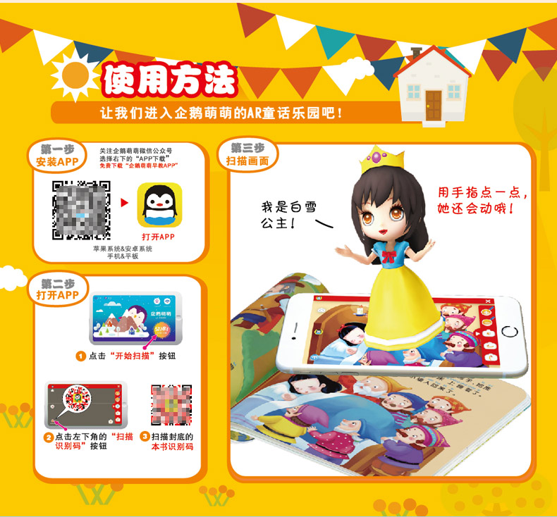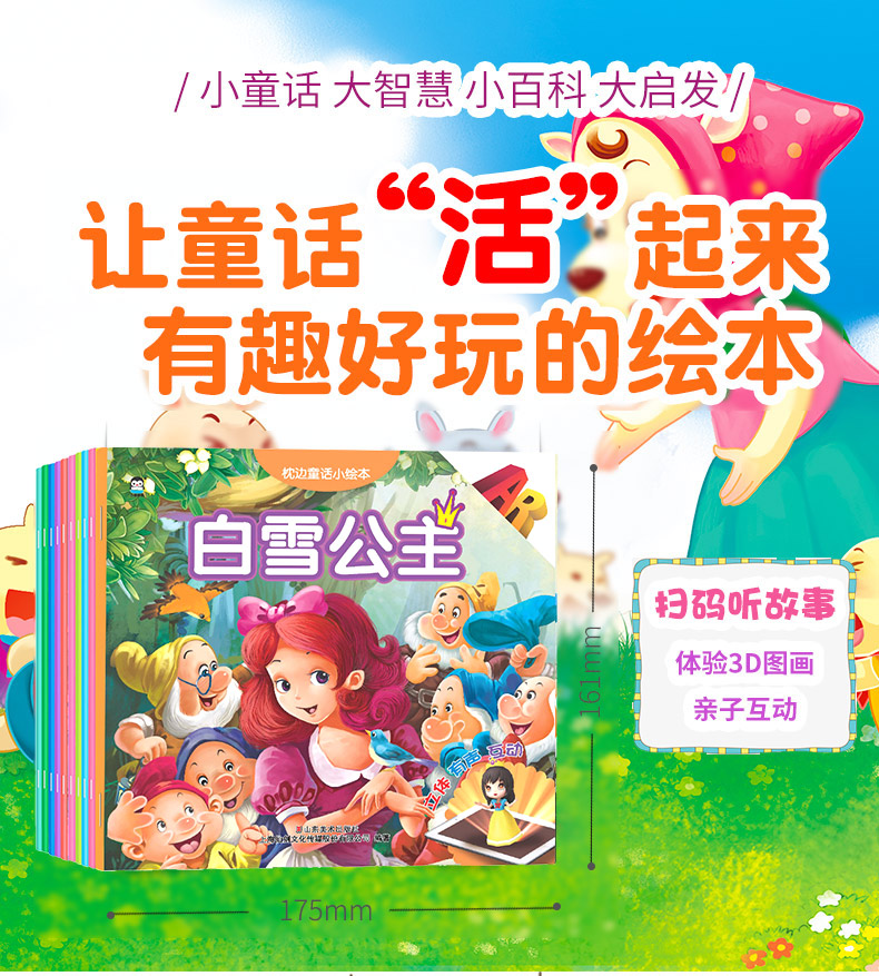 AR科技扫一扫快乐看听学,里面含有白雪公主、小红帽、丑小鸭、三只小猪、灰姑娘、青蛙王子、睡美人、海的女儿等,3-4-5-6岁幼儿童宝宝睡前童话故事书,提升宝宝智力,让宝宝学习更快