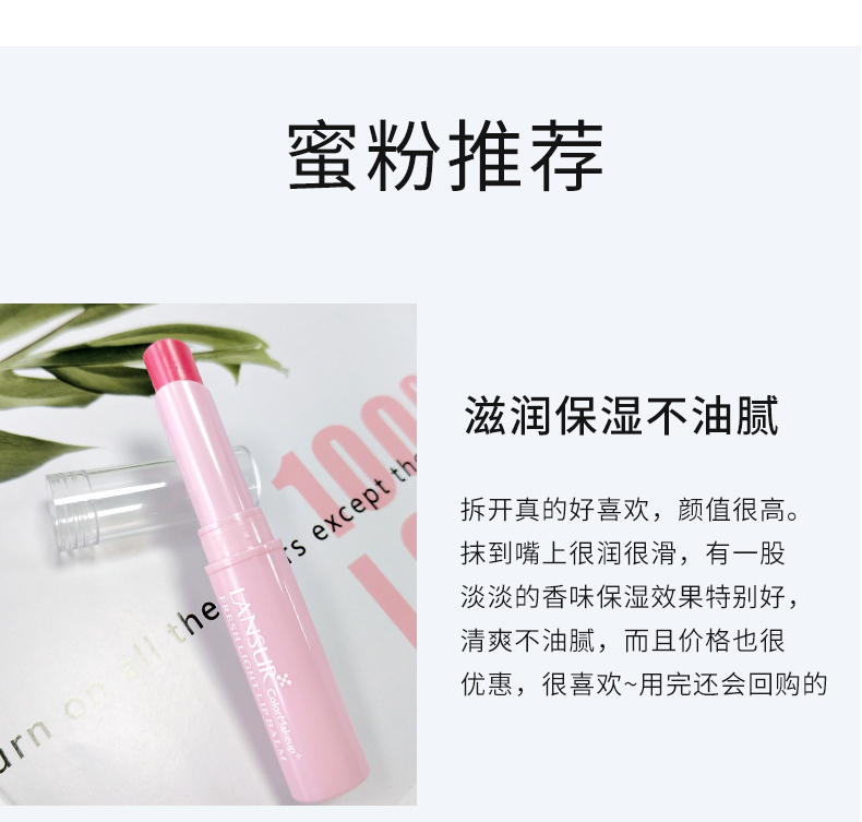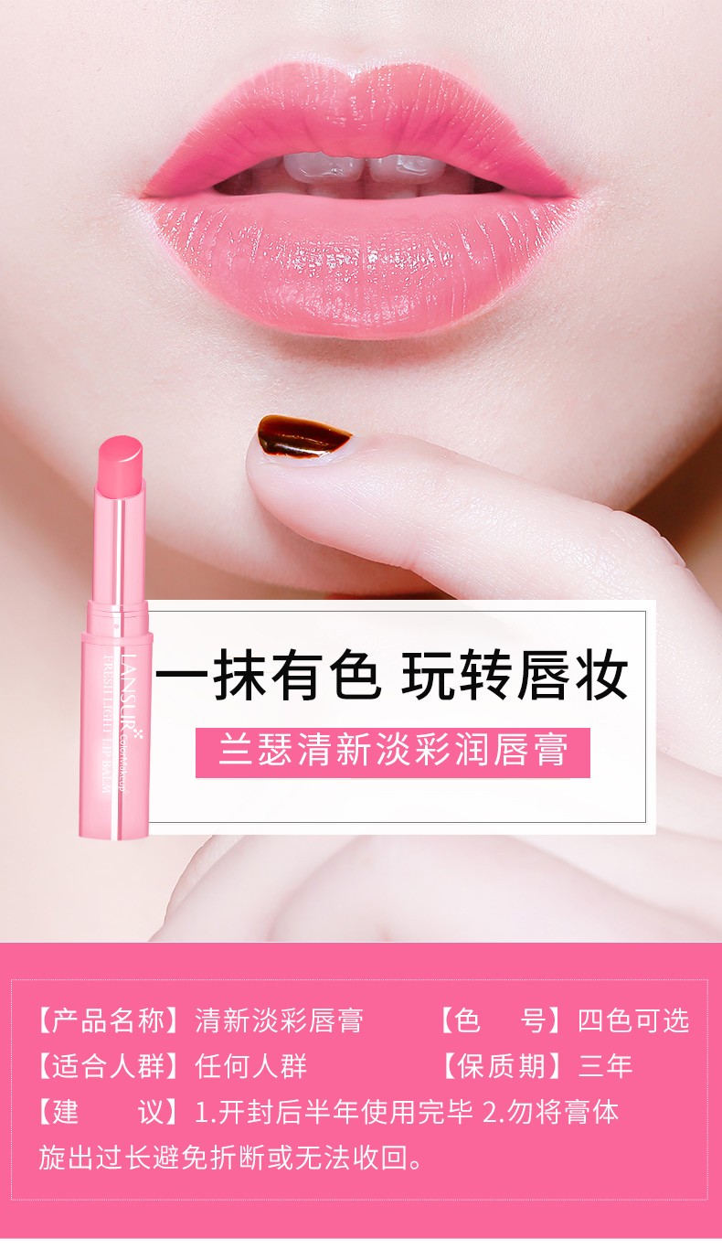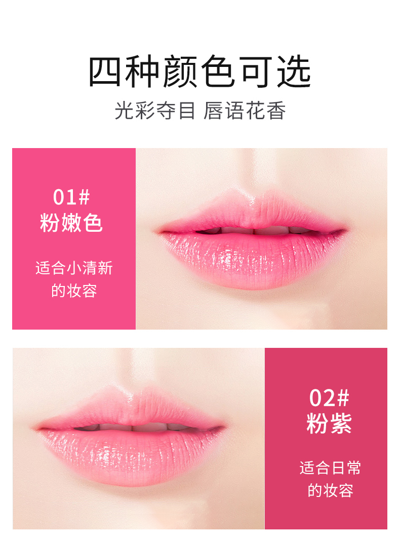 四色可选,保湿滋润,富含维生素E等滋养成分,天然温和,深层修护,保湿防干裂,口红打底,水润显色,不易脱色