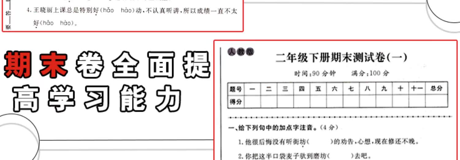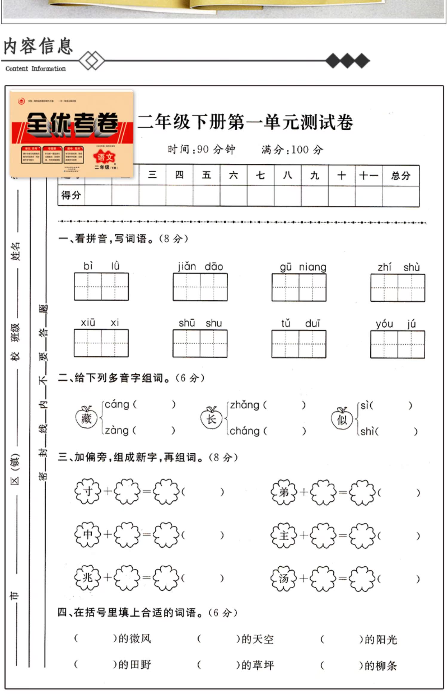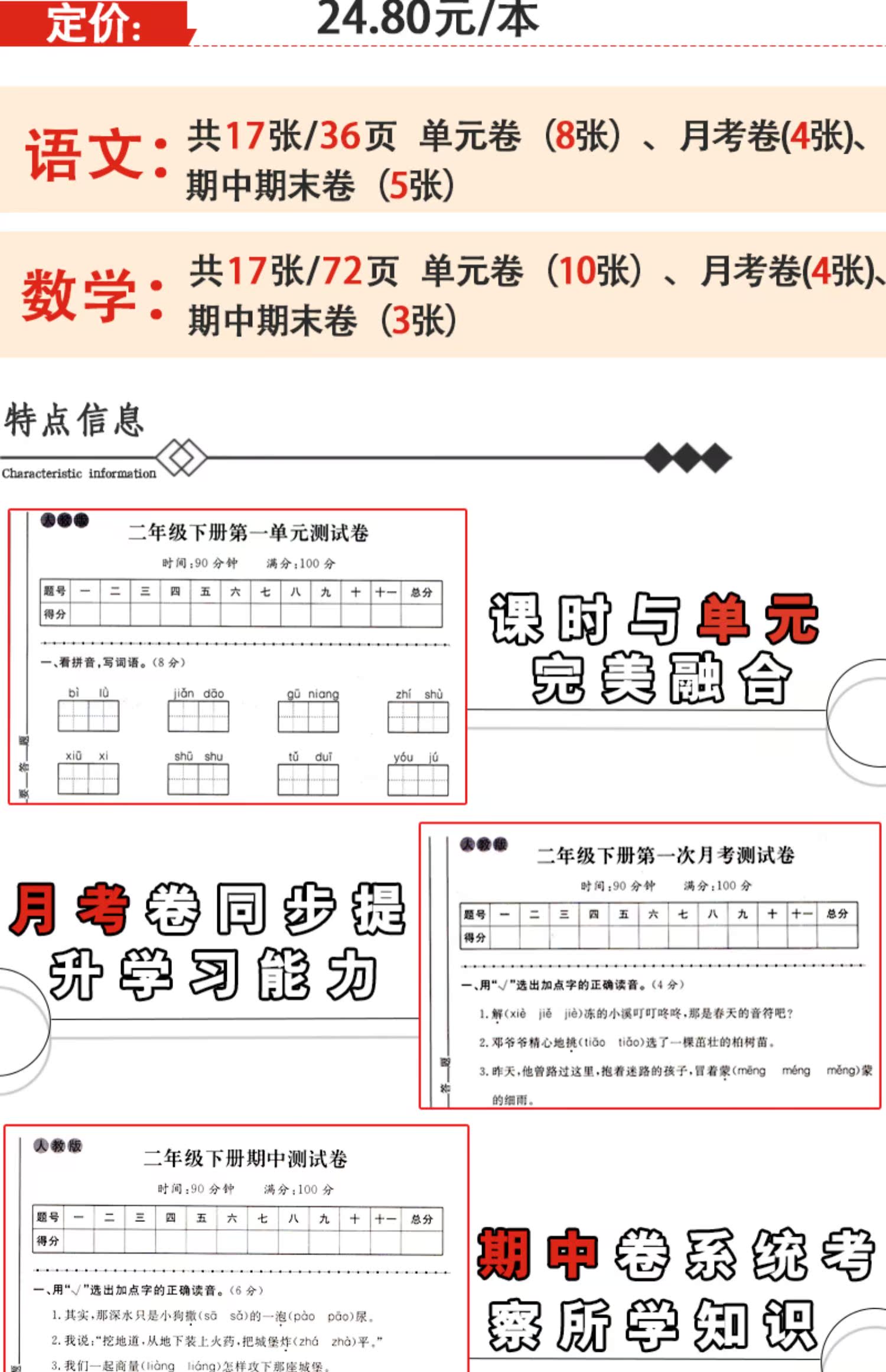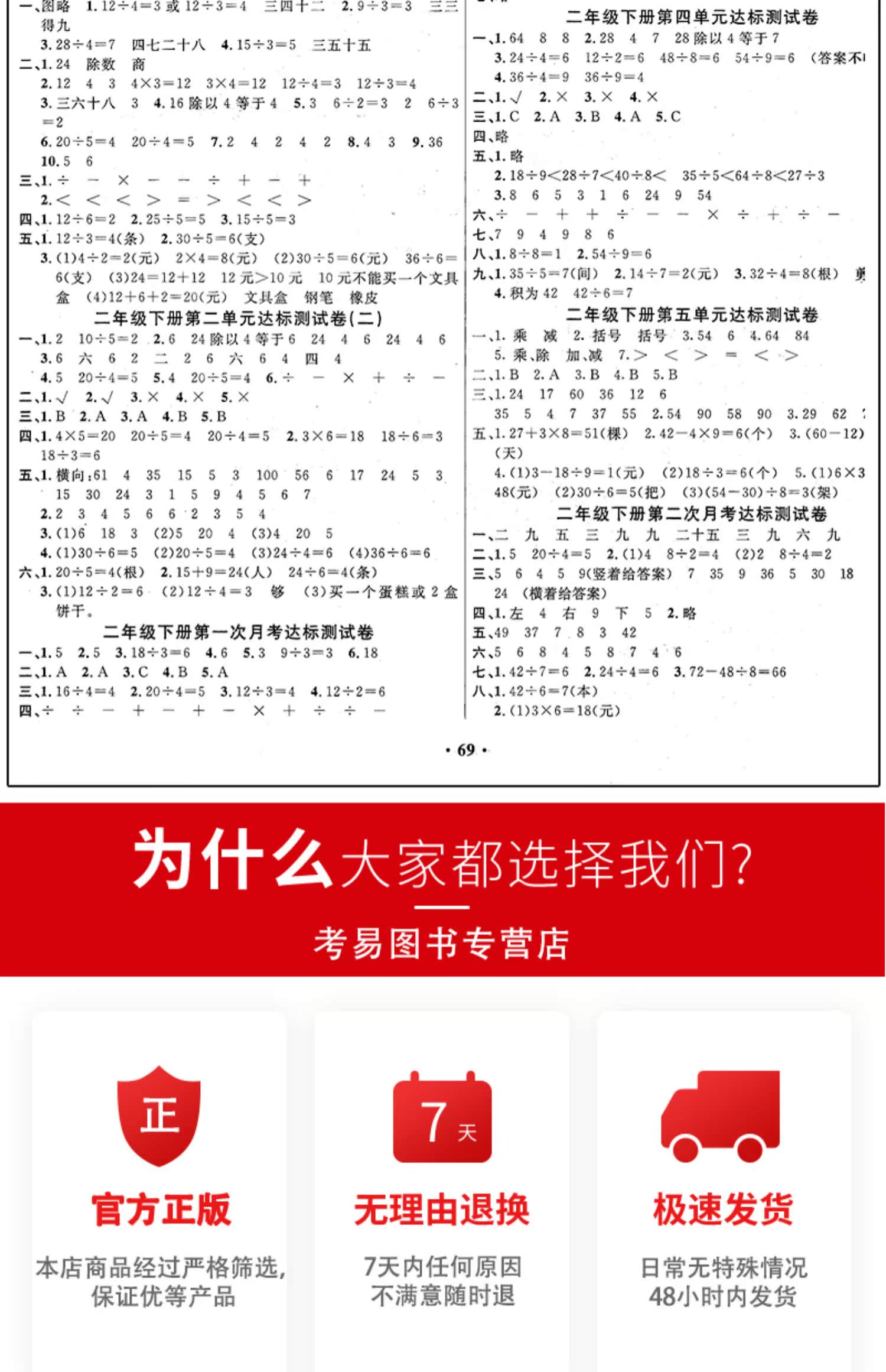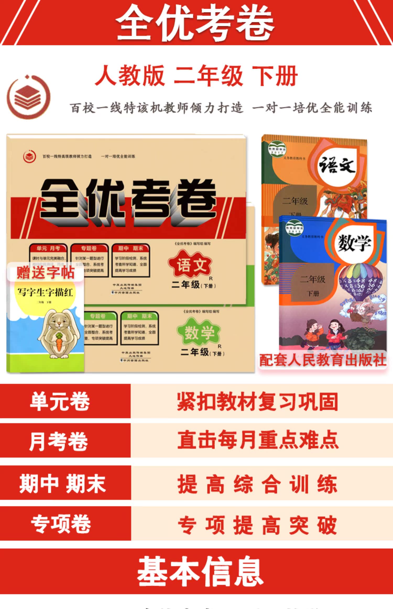 【语文+数学+送字贴本!共三本,二年级下册同步】二年级下册同步测试卷全套人教精编版!课时同步,基础提高,同步练习,及时巩固。综合训练,不断进步!题型多种多样!助力孩子课后学习。