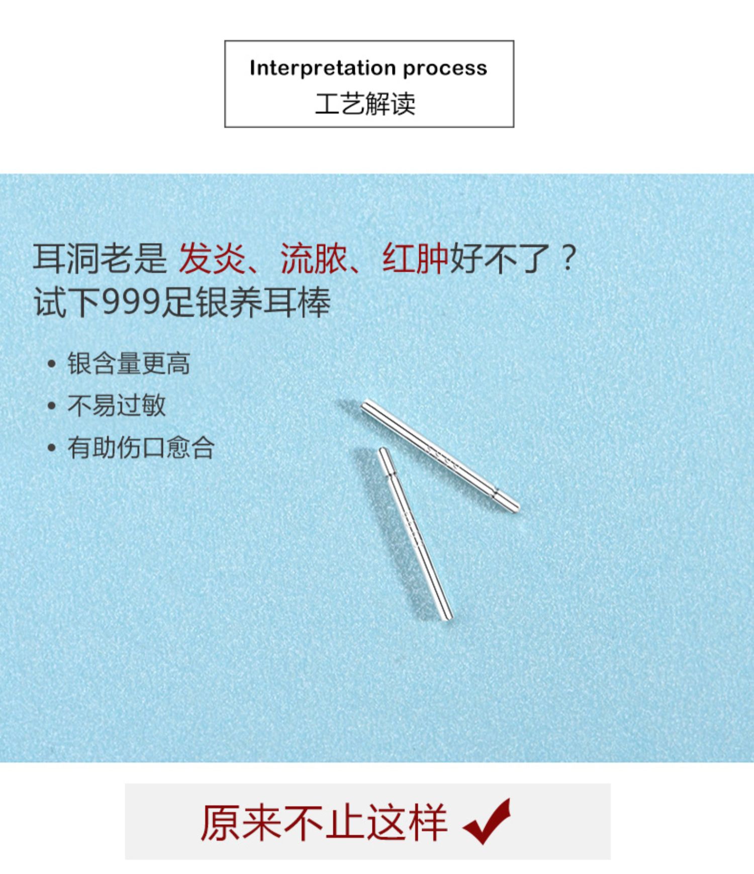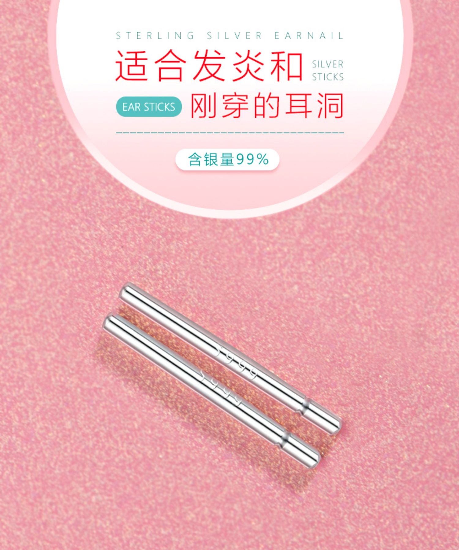 999纯银耳针,999足银耳棍,简约耳棒,新打耳洞养护防闭塞良品,不过敏,解决耳洞老是发炎的烦恼,要打耳洞赶紧备上。