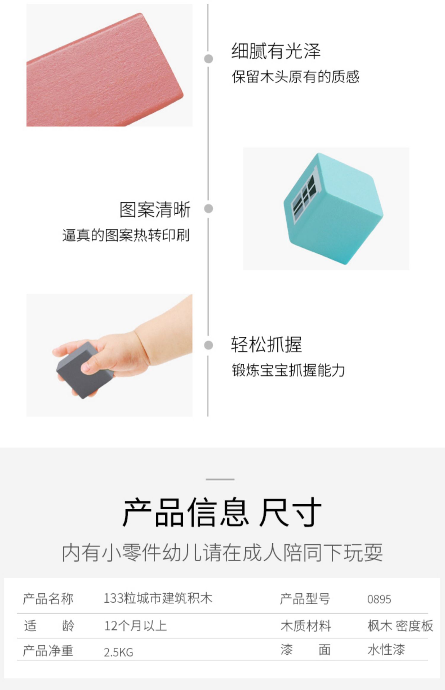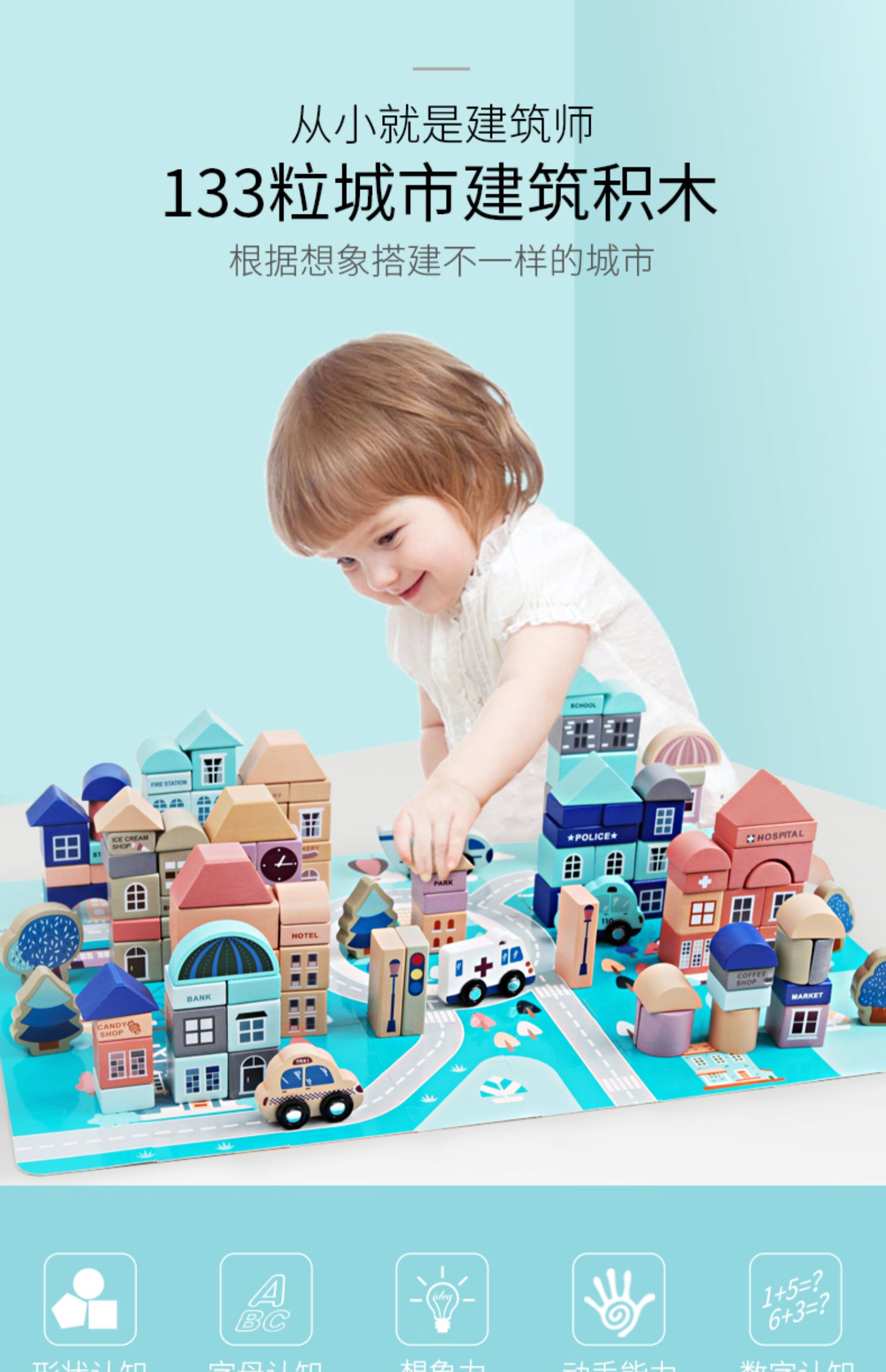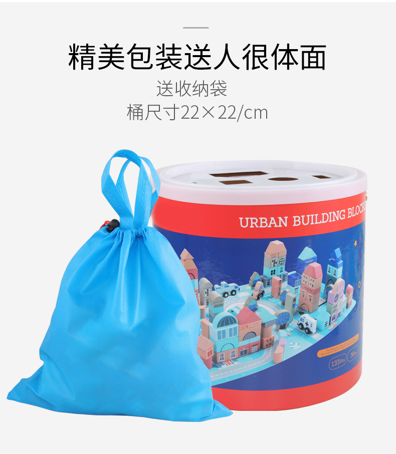 133粒桶装大颗粒积木,全部选自优质木材,玩法多样兼容乐高积木,创意无限,开发宝宝智力,促进宝宝动手能力!