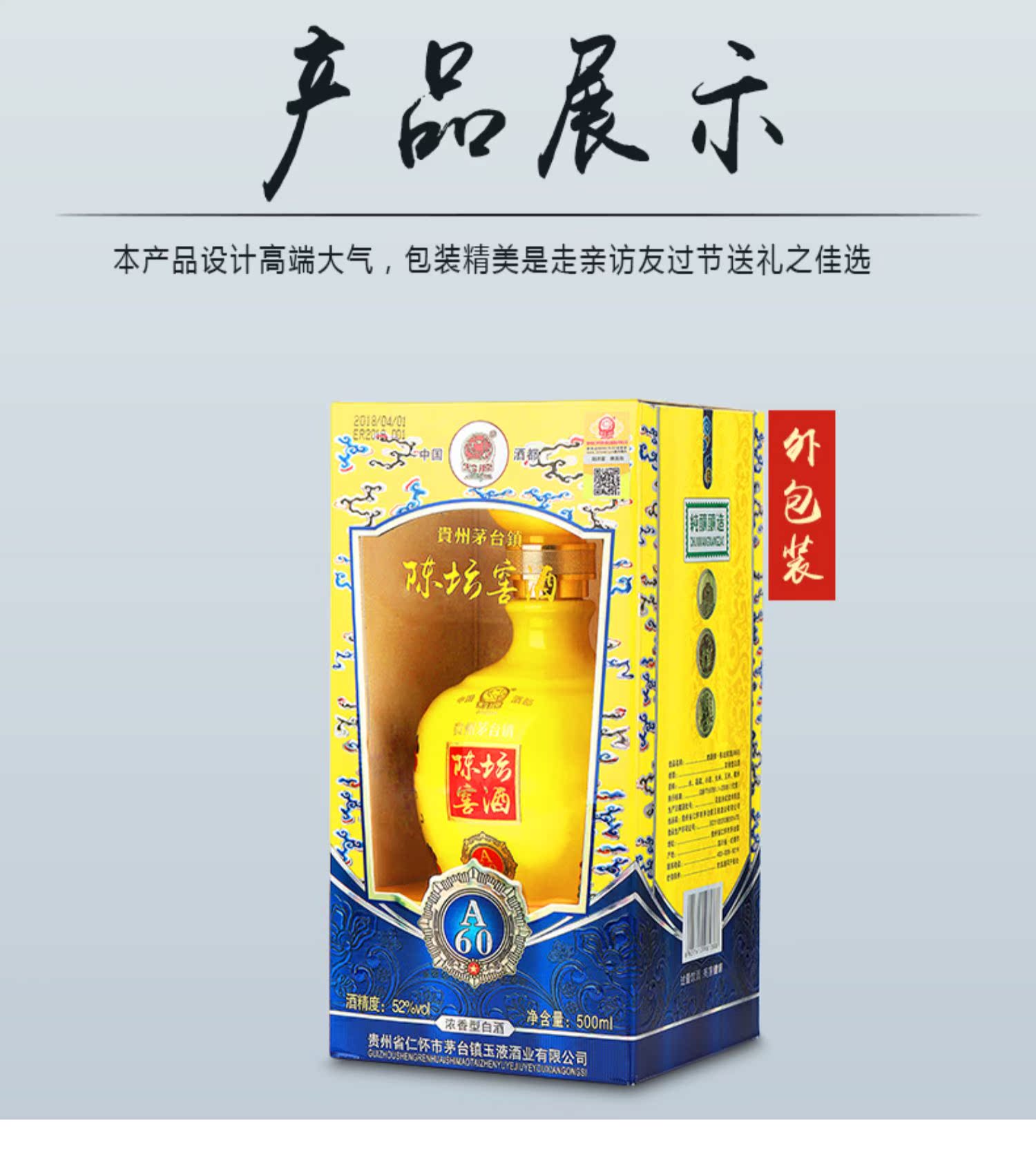 【正品茅台】陈坛窖酒,纯粮酿造,芳香浓郁、绵柔甘洌、香味协调、入口甜、落口绵、尾净余长,回味悠长!两瓶送精美礼品袋,收藏送礼自饮之佳选【扫码价698元】