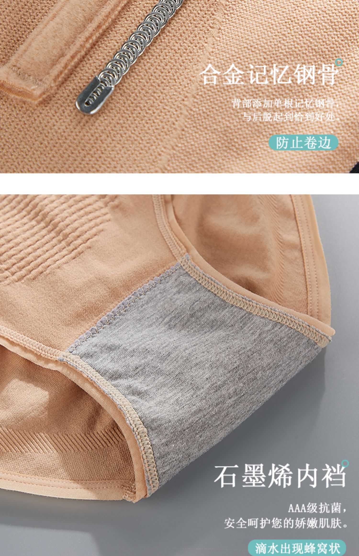 【拍2件】石墨烯高腰收腹美体裤。暖宫的内含量子芯片,量子芯片可以起到促进血液循环,改善新陈代谢,有助瘦身。裆部是石墨烯的抑菌效果好。