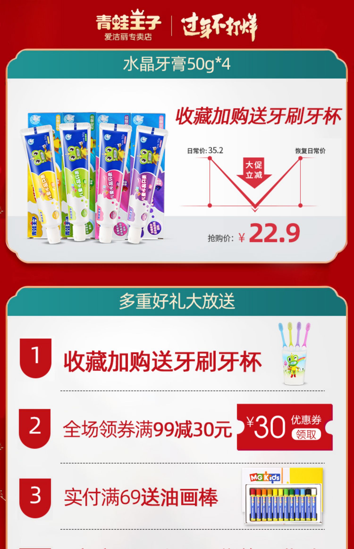 【贾乃亮甜馨代言,商超同款】买就送4支儿童牙刷+漱口杯1只;专注婴童护理24年!采用食品级木糖醇原料,微氟添加,四款果味随心搭配,健齿防蛀,妈妈选的放心,让宝宝爱上刷牙!