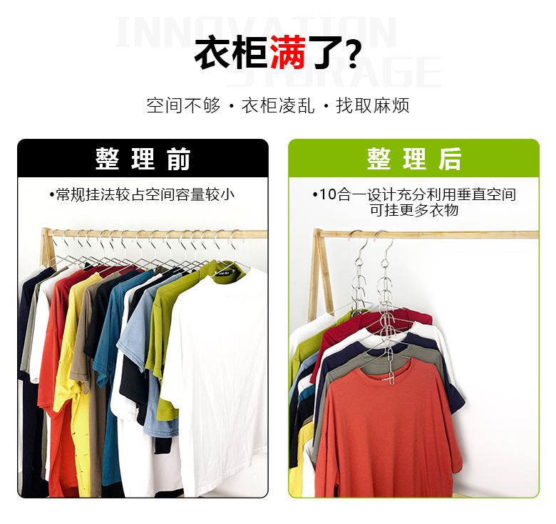 多功能魔术衣架,节约多倍空间!结实更耐用,稳定不乱跑,轻松收纳,整齐美观,再也不用担心找不到衣服了!~