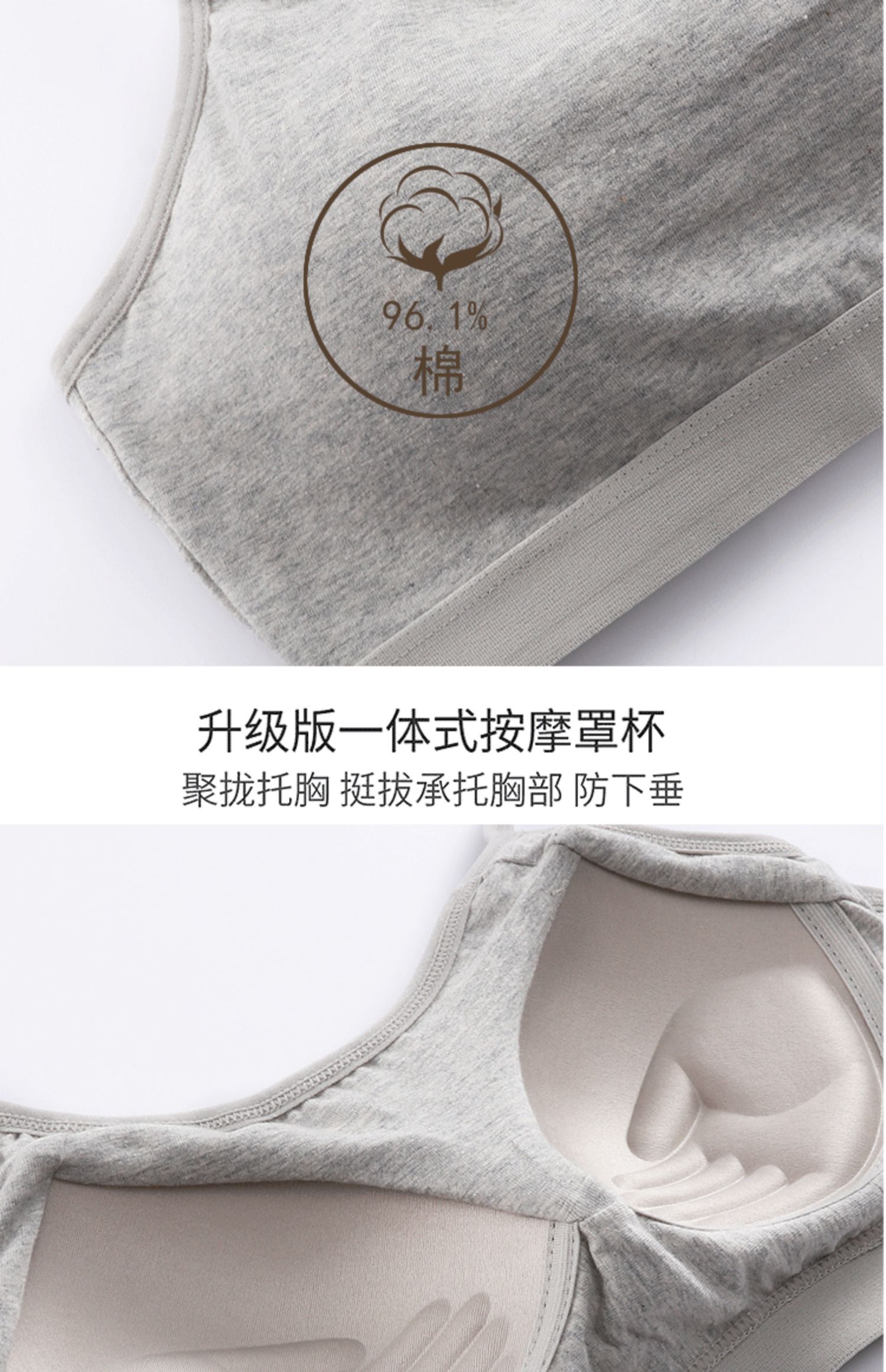 【共2件!2款4色任意搭配!赠运费险】采用舒适纯棉面料,升级版一体式按摩罩杯,聚拢防下垂,无钢圈零束缚,轻薄透气,无痕美背设计,带给你24小时的轻松体验!~