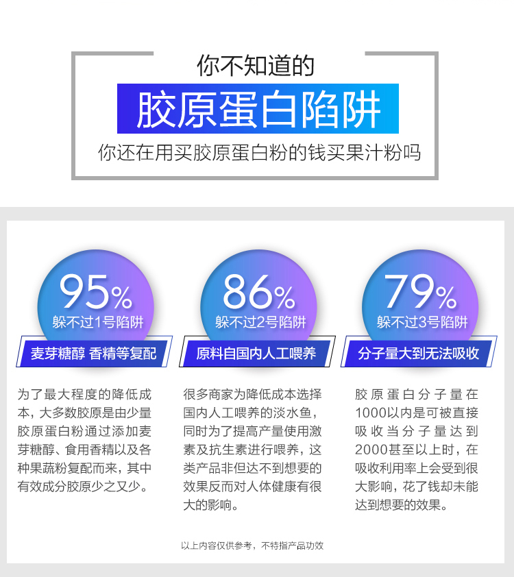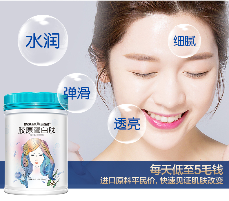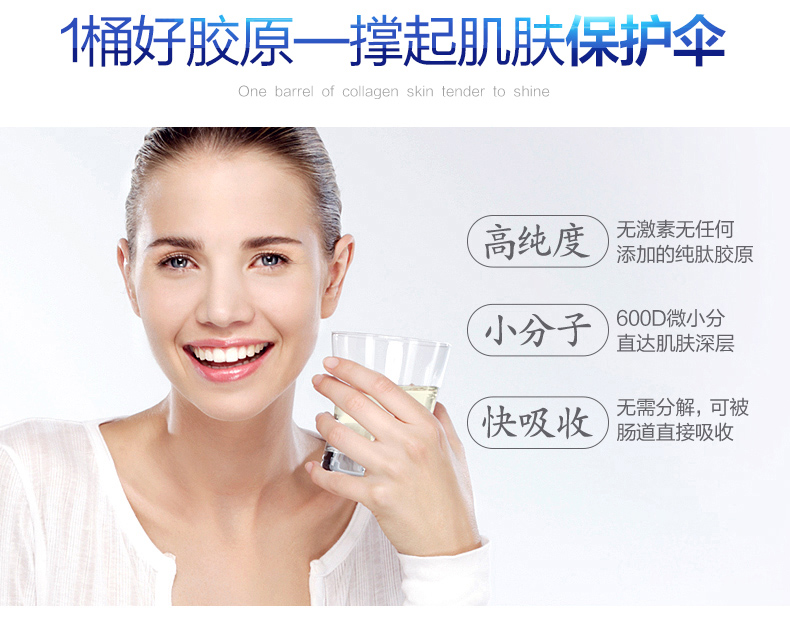 美国进口,深海鳕鱼提取,0添加0激素,原料纯净无污染,小分子易吸收,助你重回年轻Q弹,喝出水嫩肌肤,开启逆龄之旅,让你不整容、不化妆,脸蛋也能弹起来!
