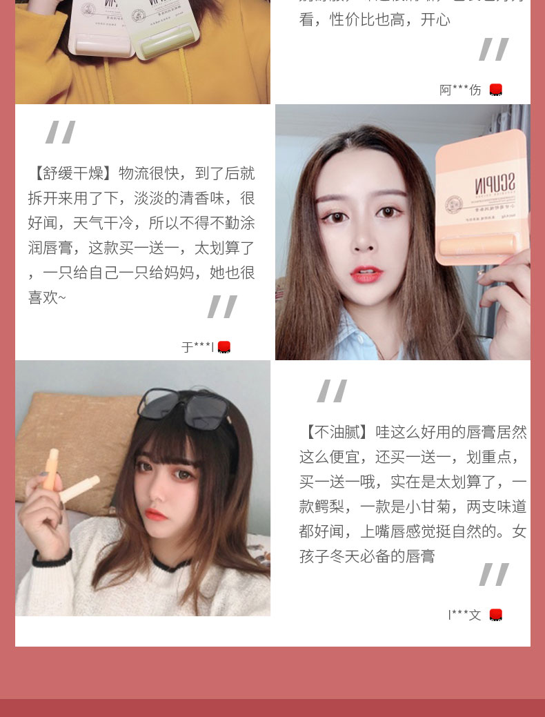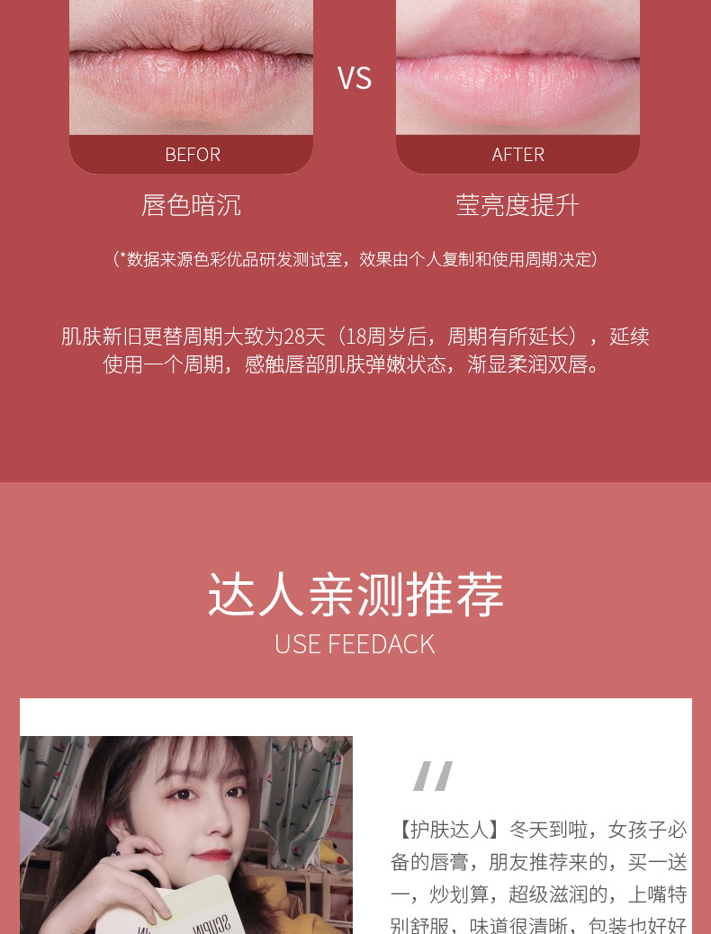 【拍1发2】【色彩优品】秋冬季必备,小甘菊,橄榄,鳄梨多种配方,保湿滋养补水,润唇修护,男女可用,唇妆打底,给你想要的水润,无惧干裂,随时呵护,水润嘟嘟嘴,纵享唇部SPA!