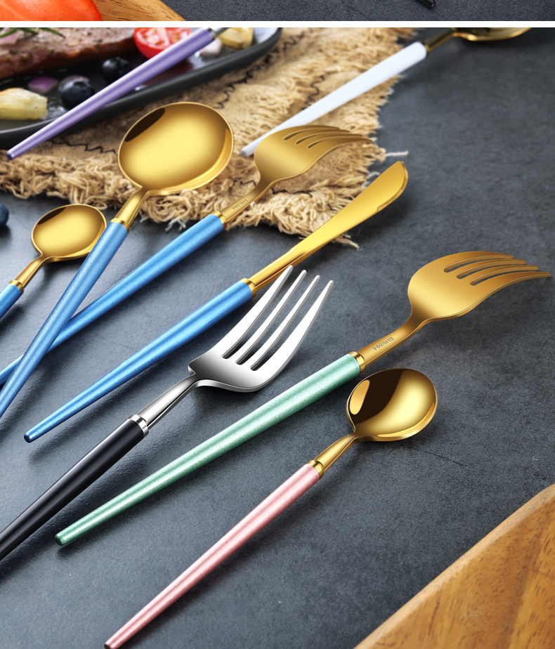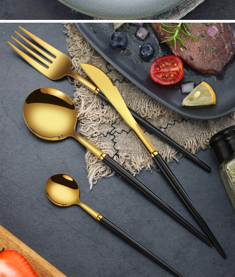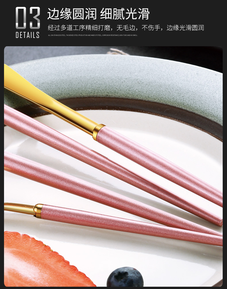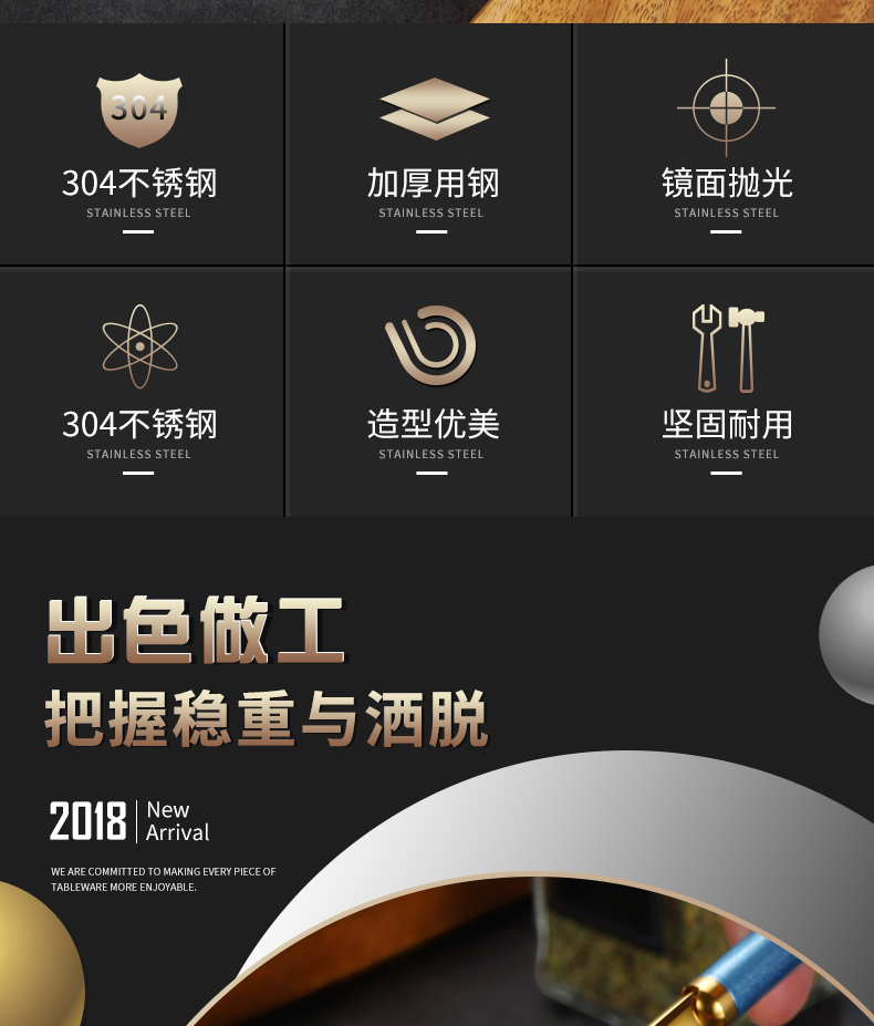 加厚304不锈钢,一体成型,镜面抛光,圆润打磨,手感舒适,切割省力,耐腐蚀,抗氧化,易清洗,有质感的牛排刀叉套装!