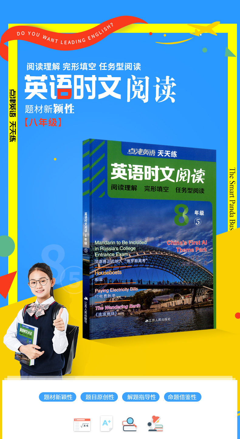 江苏人民出版社,初中英语时文阅读,阅读理解,完型填空。任务型阅读,为你的孩子进行英语全方位训练,提供英语阅读能力。