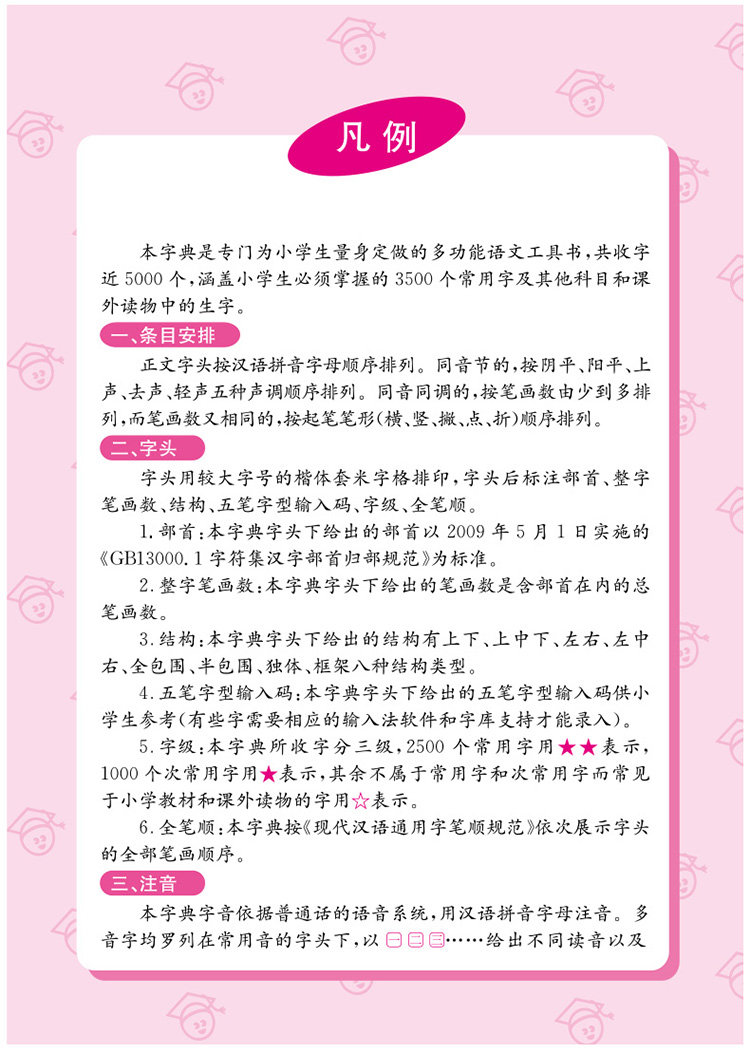 本字典是专门为小学生量身定做的多功能语文工具书,共收字近5000个,涵盖小学生必须掌握的3500个常用字及其他科目和课外读物中的生字