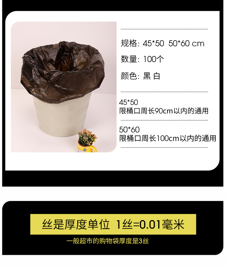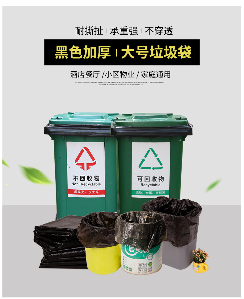 加厚垃圾袋,高韧性,强耐撕扯,结实牢固,承受力更强,多种规格可选,断点设计,方便快捷,日常消耗品得多囤哦。