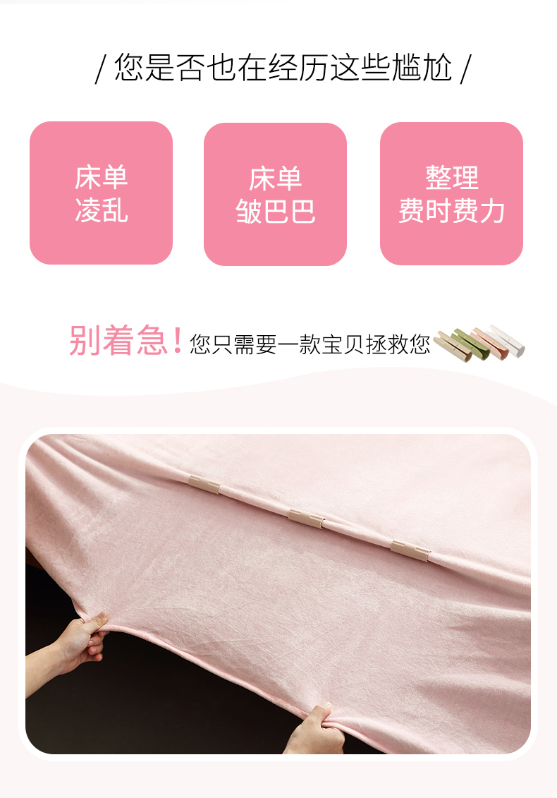 床单凌乱不堪?固定神器在手,一秒变整洁!卡扣牢固,只需简单3步,轻松固定四周,床单再也不跑偏~还可以做零食封口夹哦,超实用的!24枚只要6.9,一个不到三毛钱,巨划算!