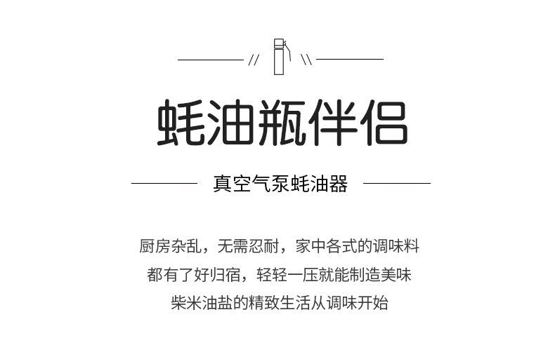 优雅倒蚝油,创意改变生活,按压嘴精准定量挤压,食品级pp材质,易清洗安全耐用,手感舒适,密封防潮,可重复使用,厨房必备小神器!