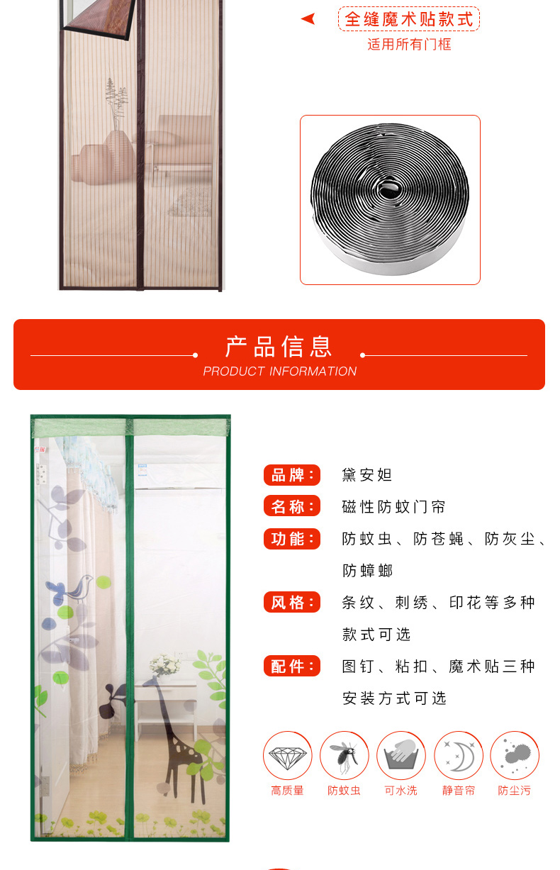 2020全新升级,静音门帘,采用60克加厚加密纱网面料,8对超强大磁块,6组强力磁条,底部双排磁块设计,闭合更迅速!【赠运费险】