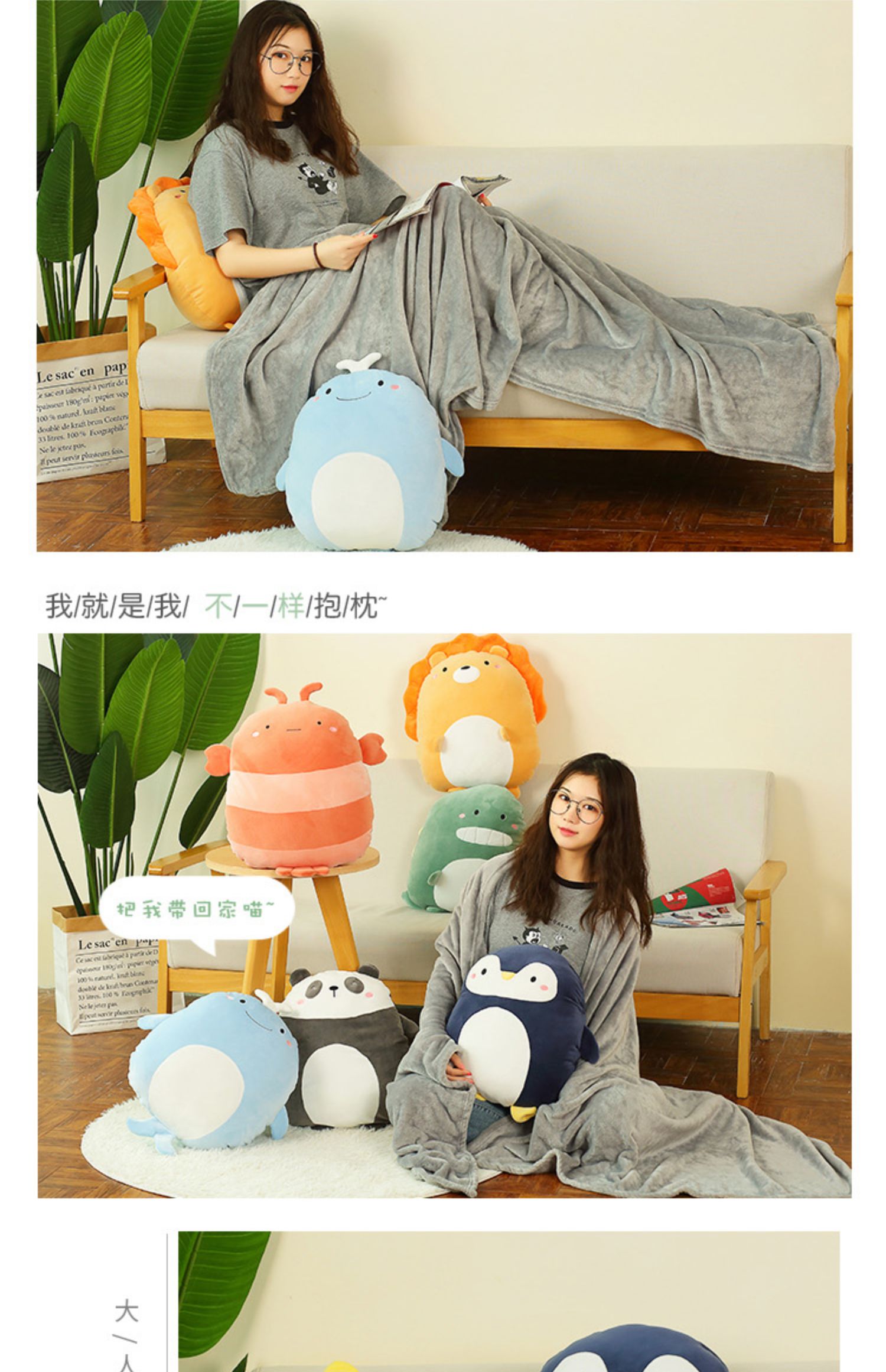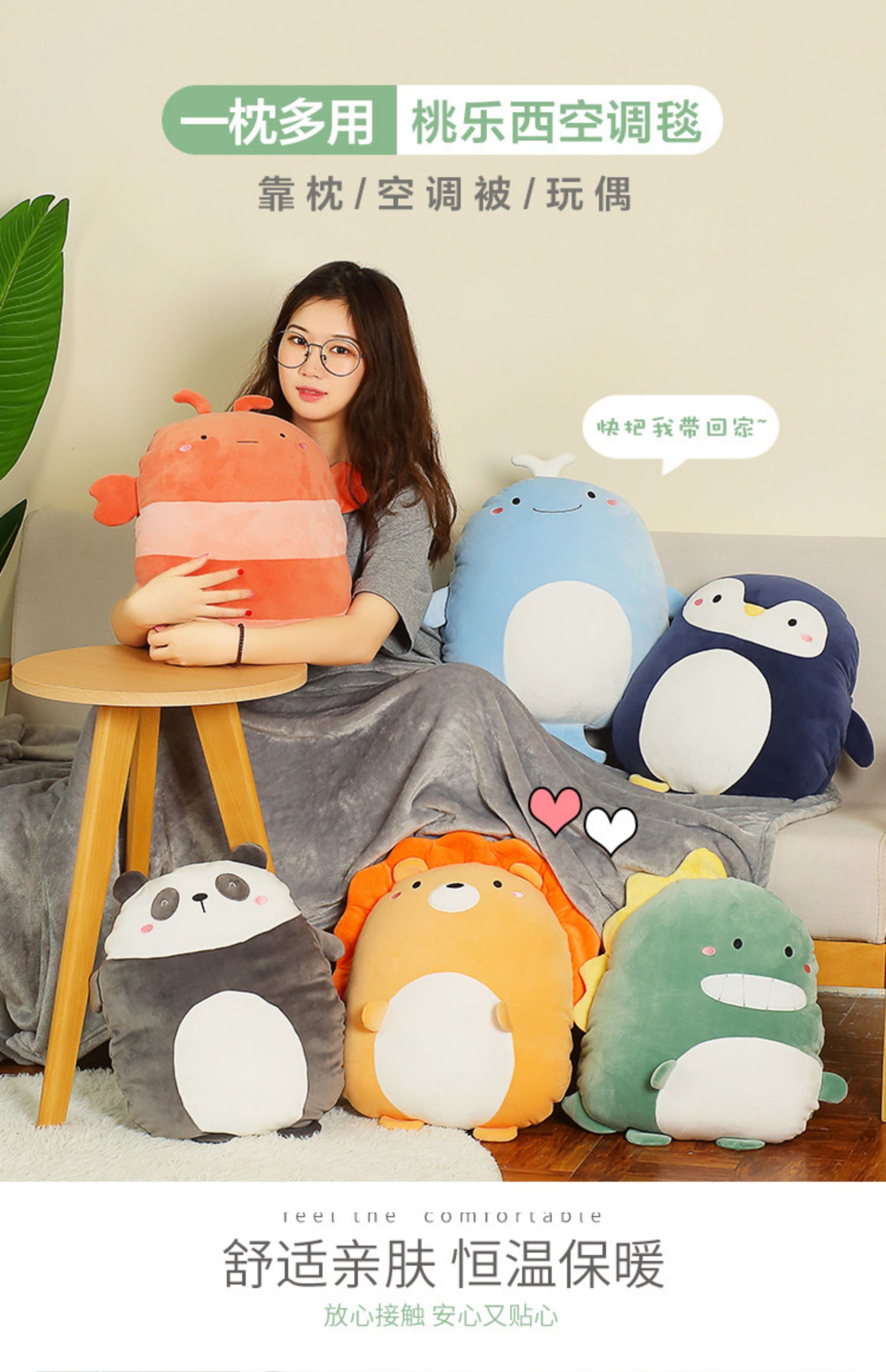 一偶多用,毛绒材质,做工精细,插手设计,触感细腻,亲肤顺滑,保暖舒适,萌萌可爱,多种款式任你选,棒棒哒~