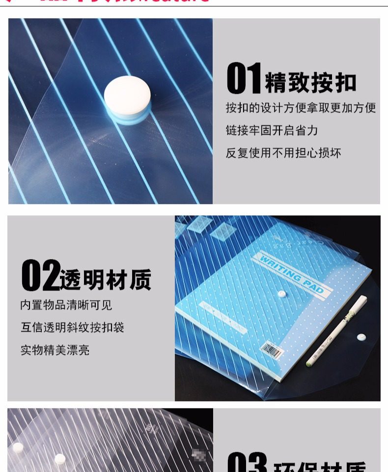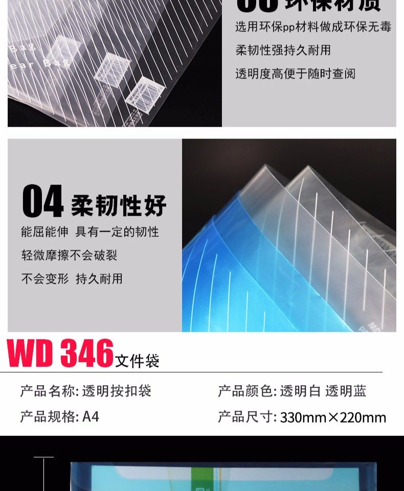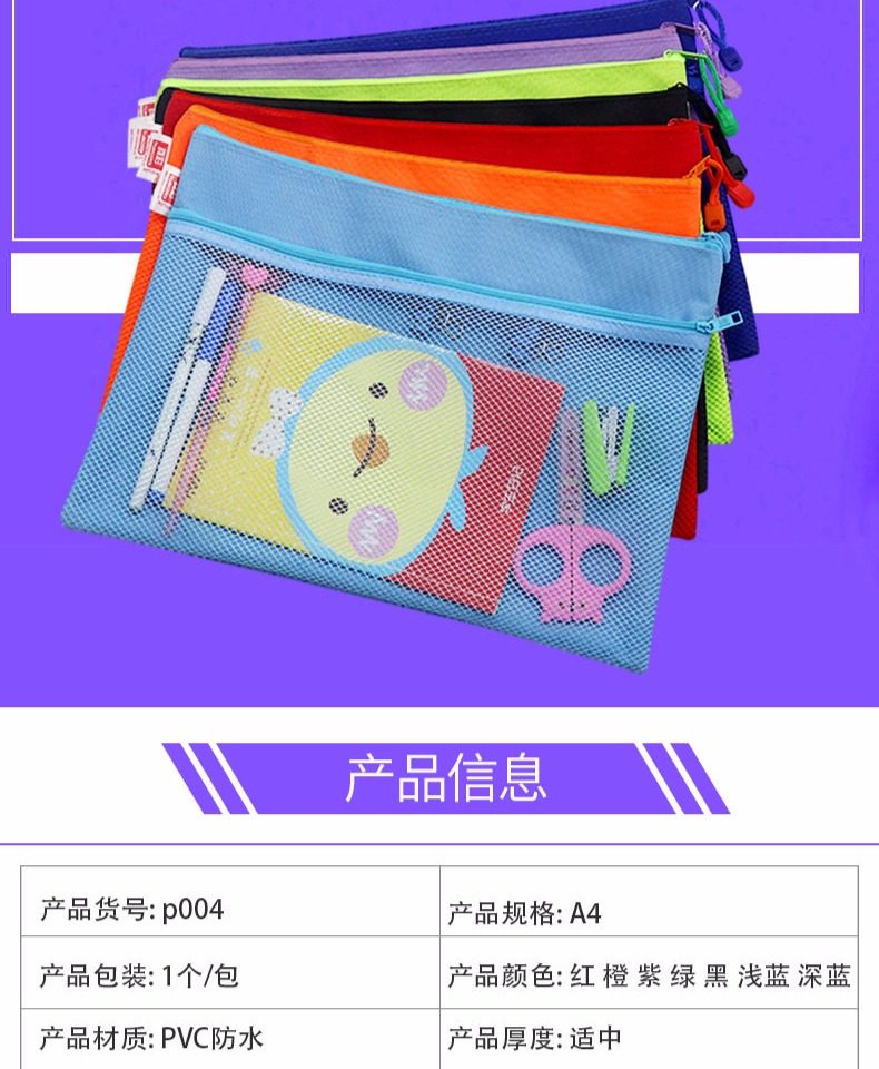 A4规格透明拉链袋,防水防潮,结实耐磨,加厚网格,文件轻松收纳,轻便易携,采用PVC原料,手感舒适,整体高度透明,品质优选,办公学习必备。
