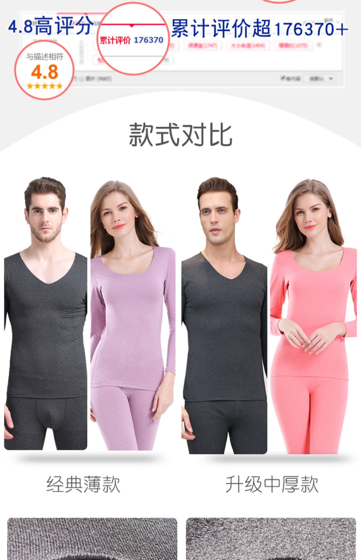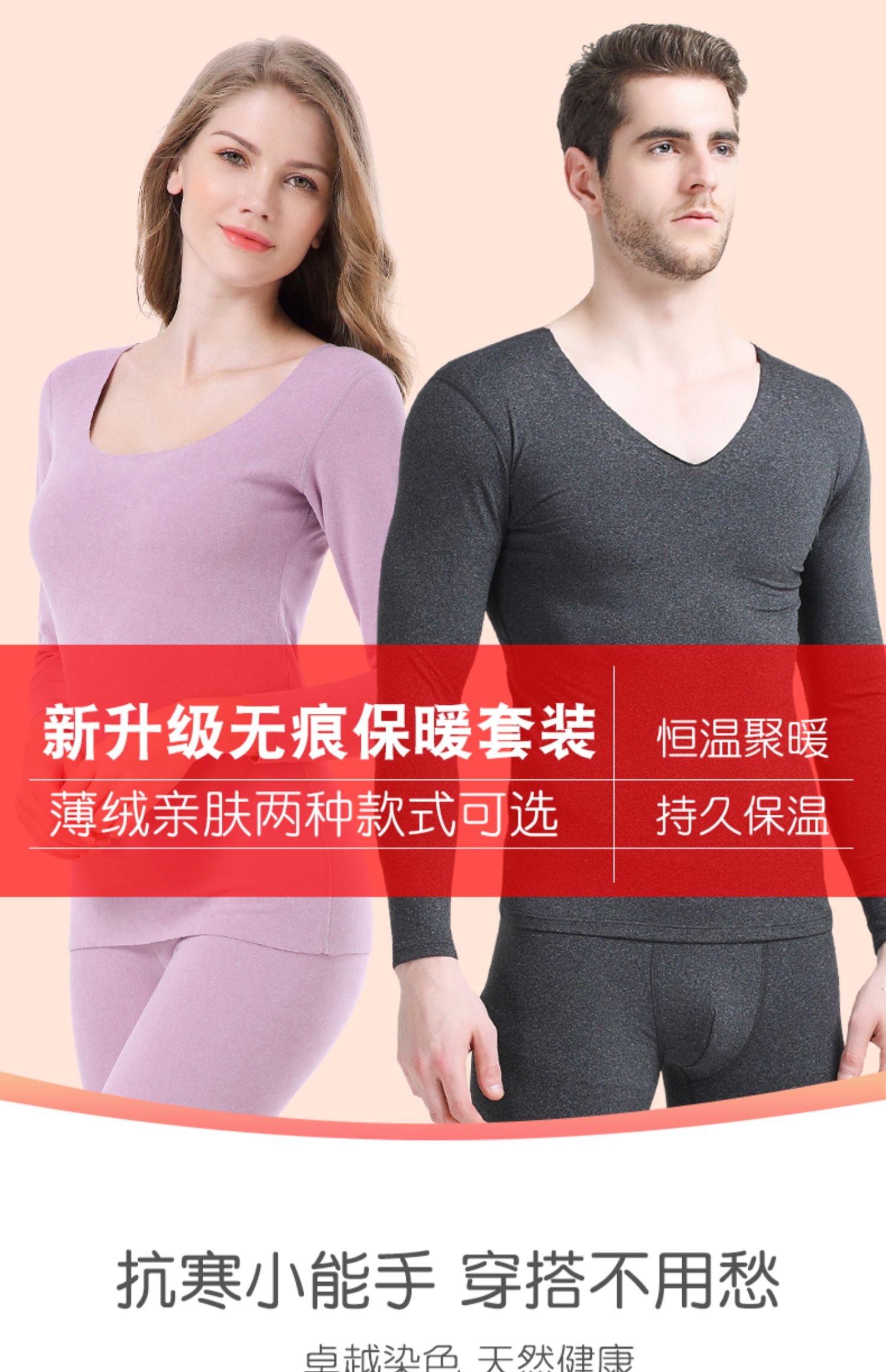 专柜一套189!男女情侣款保暖内衣,采用高科技发热纤维,细腻柔滑,里层磨绒织造,贴身无刺激,保暖不臃肿,让这个冬天不再冷!【赠运费险】