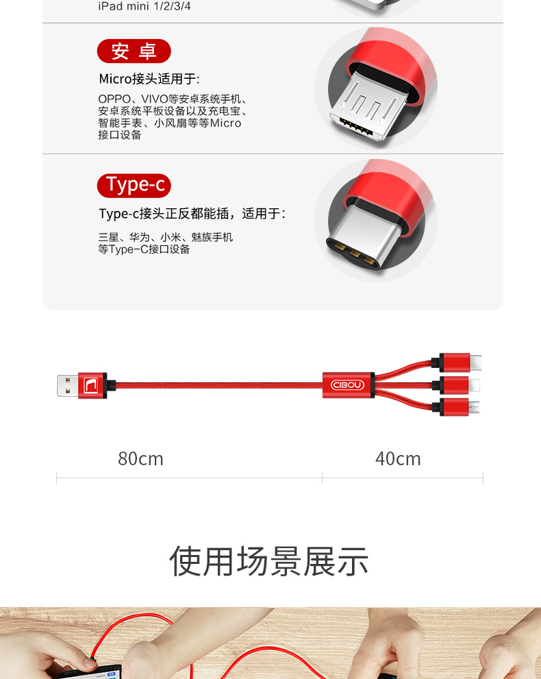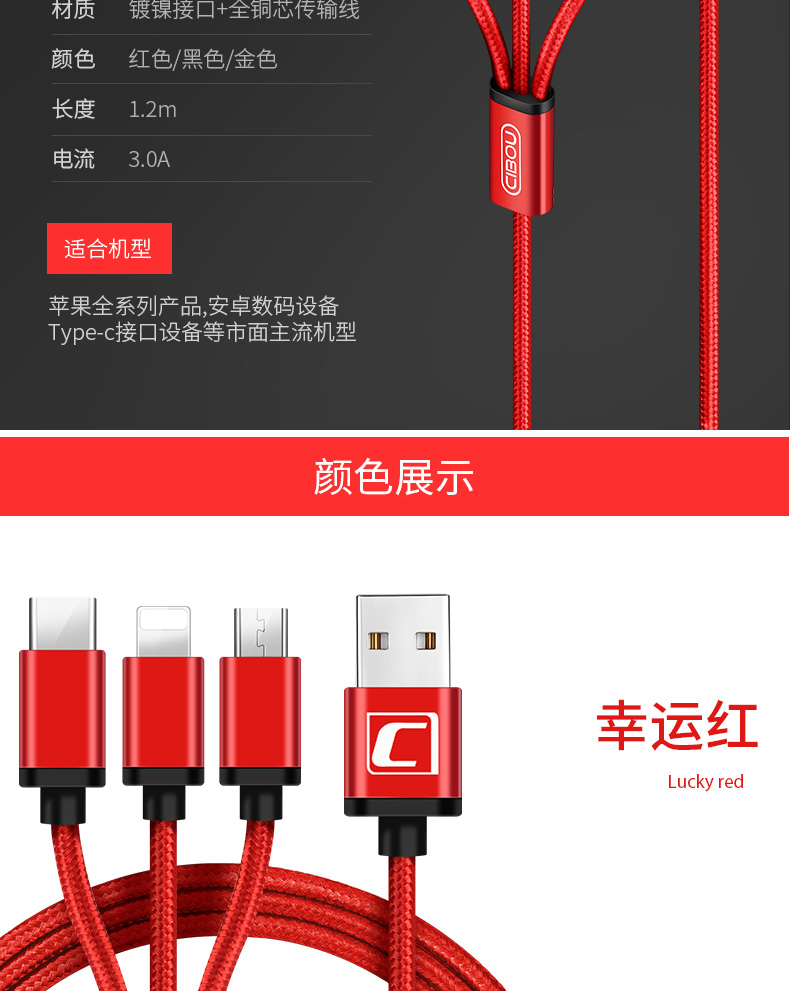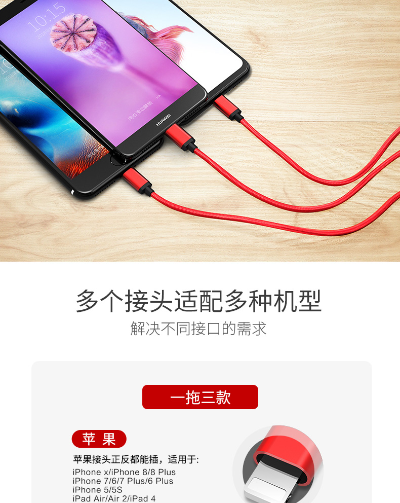 超值一拖三数据线【3A加粗版、质保2年】全铜芯,柔韧不断裂,有适用于所有类型手机,充电数据三合一,苹果安卓Type-c统统搞定,快速充电,不分正反,组队吃鸡互不干扰~