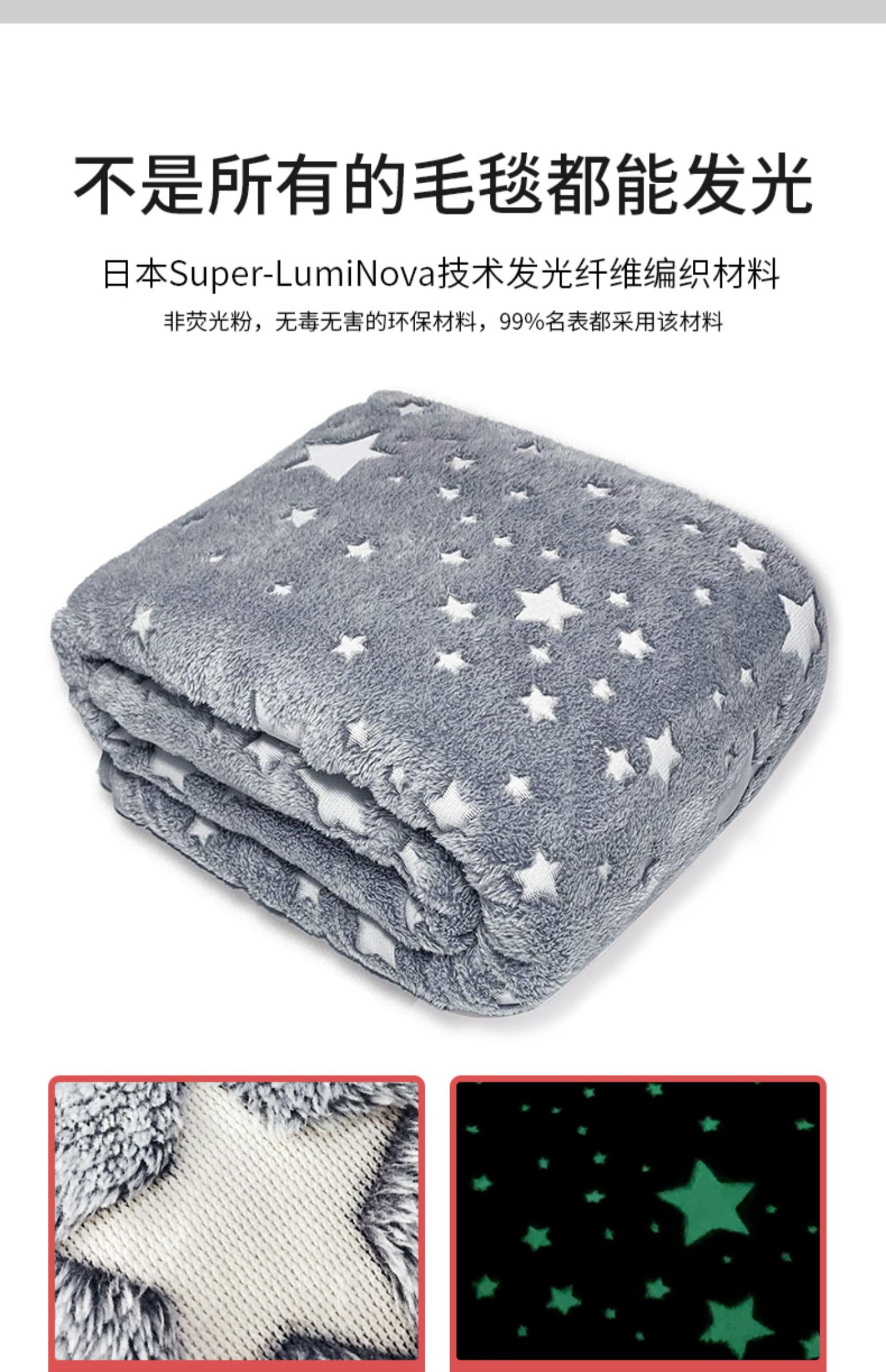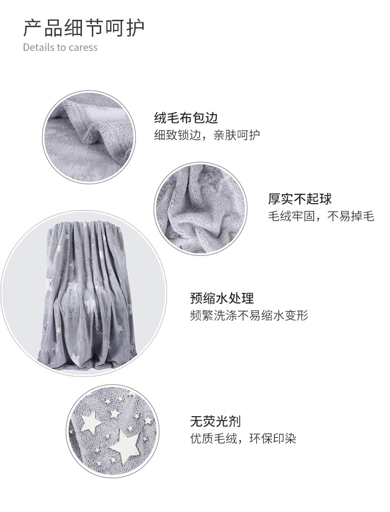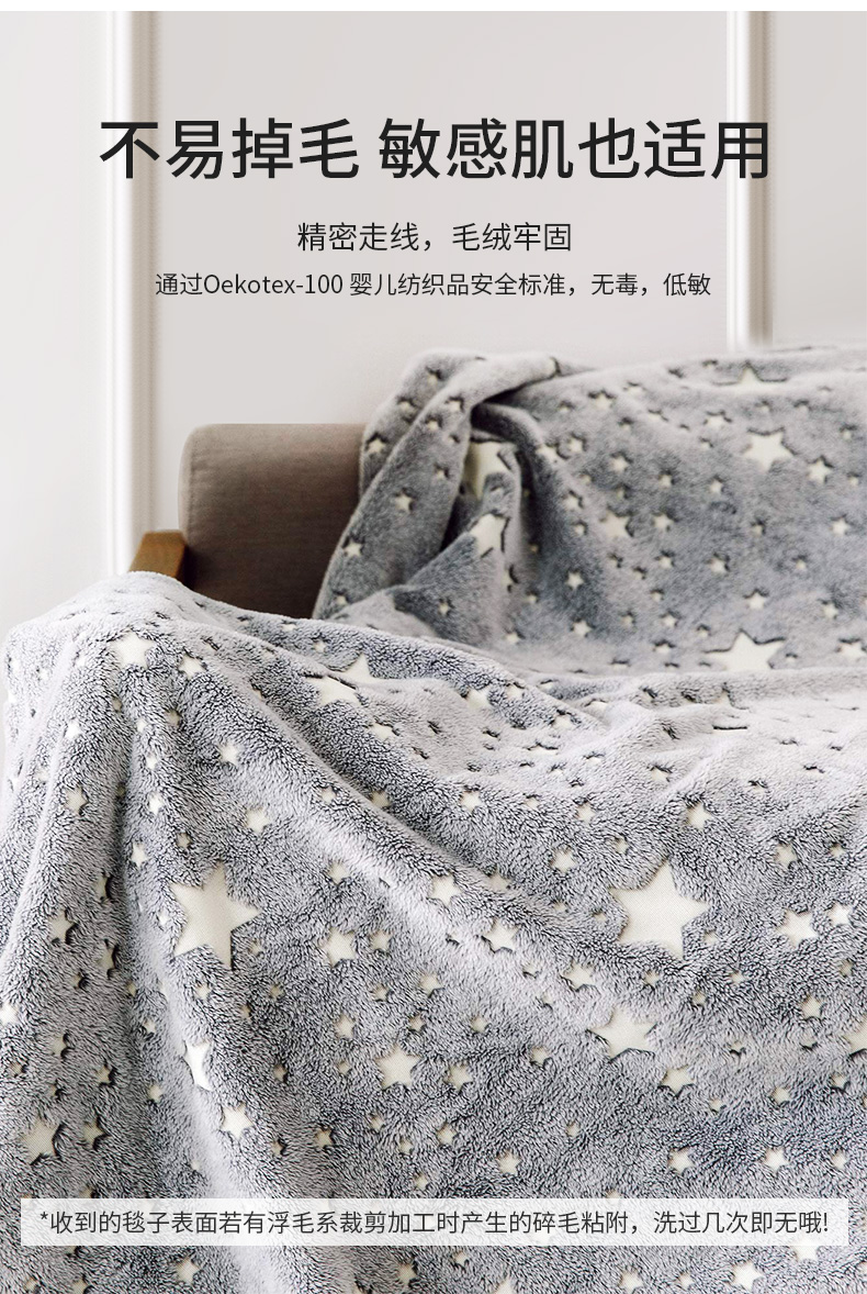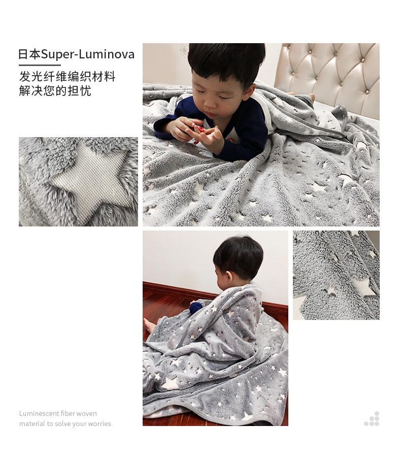 法兰绒夜光星空儿童发光毛毯秋冬加厚