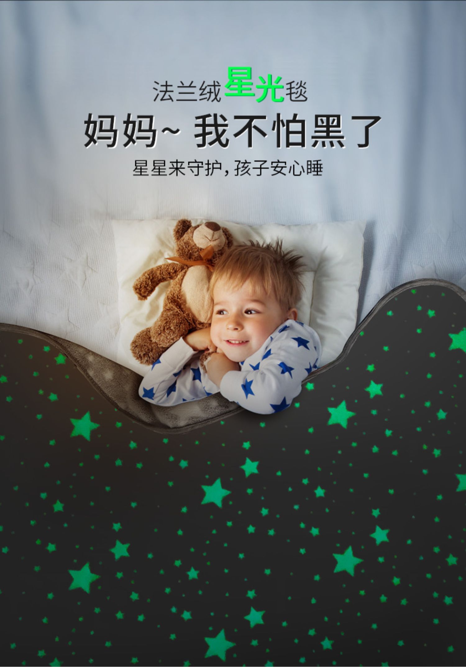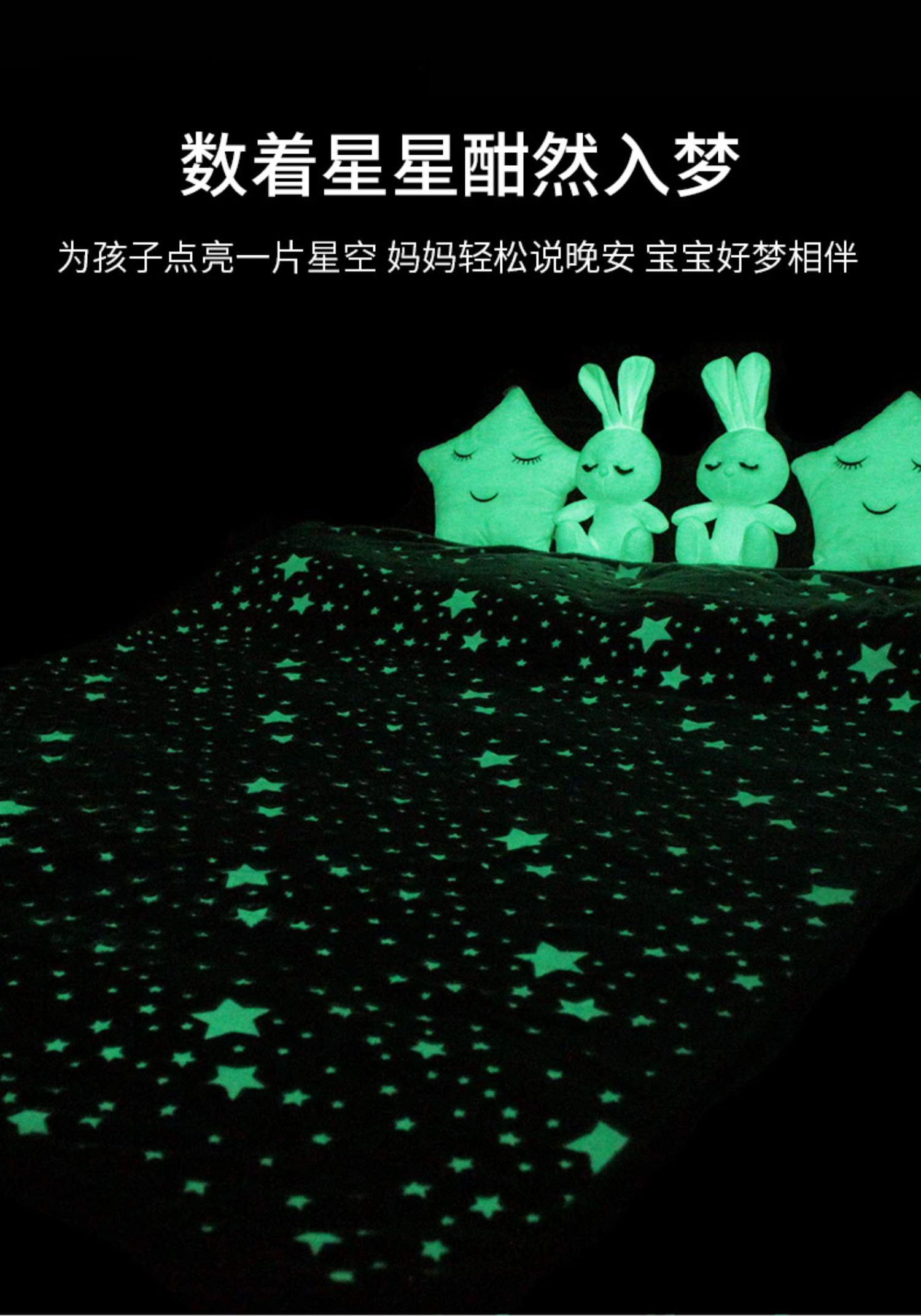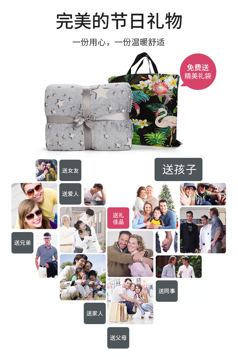 法兰绒夜光星空儿童发光毛毯秋冬加厚