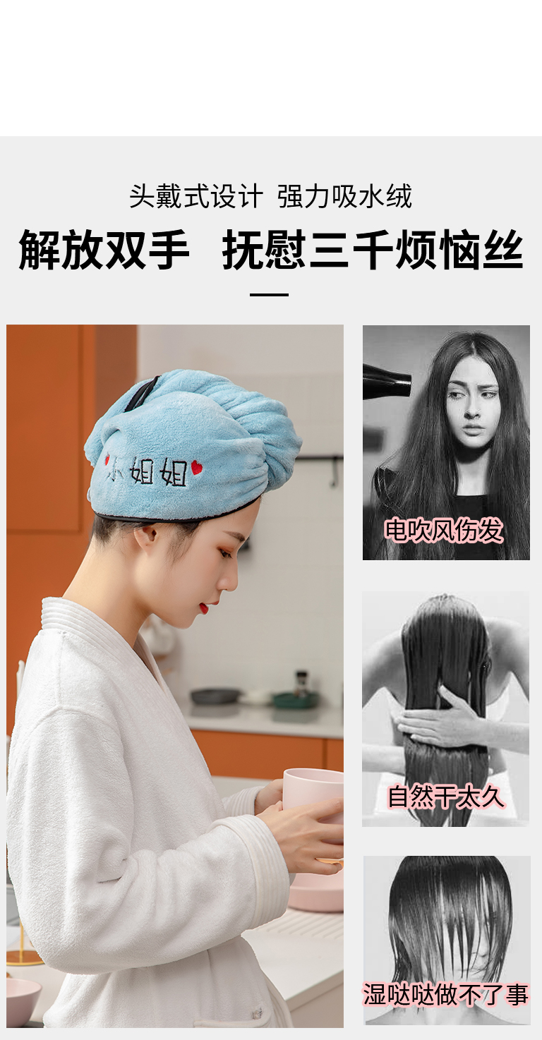 加厚强吸水干发帽,擦长头发速干神器洗头巾,长绒细纤维,超强吸水,快速干发,远离吹风机,呵护发质健康,环保无异味,经久耐用!