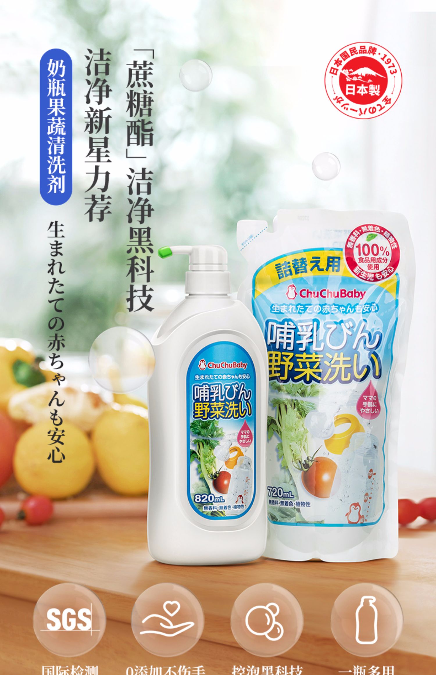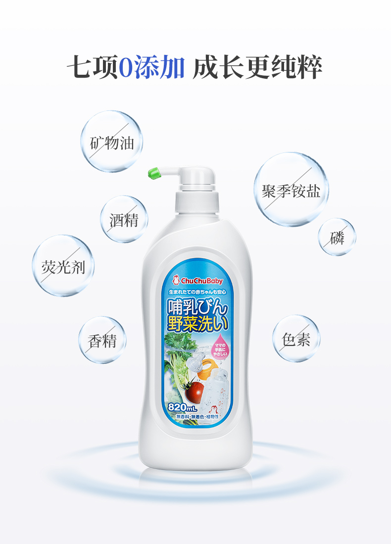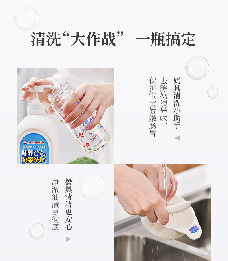 【啾啾奶瓶清洗剂】一款专为宝宝设计的,果蔬玩具清洗剂,植物提取,洁净配方,让宝宝的每一口都放心,采用食品级原料,控泡黑科技,快速起泡,一洗即净,洁净去污不残留~